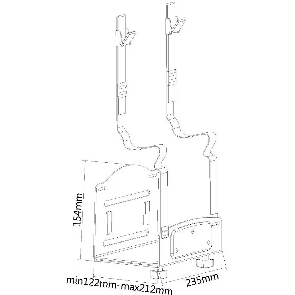 Description - This Neomounts by Newstar CPU mount, model CPU-W100BLACK, allows you to mount to a wall. A CPU mount creates a need and clean desk because it doesn?t use any valuable desk space. Increase the lifetime of your CPU due to reduction intake dust and dirt from floors. Keep the workplace clean without computers on the floor. This Neomounts by Newstar CPU mount allows vertical installation of computers. Hide your cables and keep the workplace nice and tidy. Easy to adjust in width to fit most desktop and tower PCs. The specifications listed show maximum and minimum width of the mount. All installation material is included with the product.
