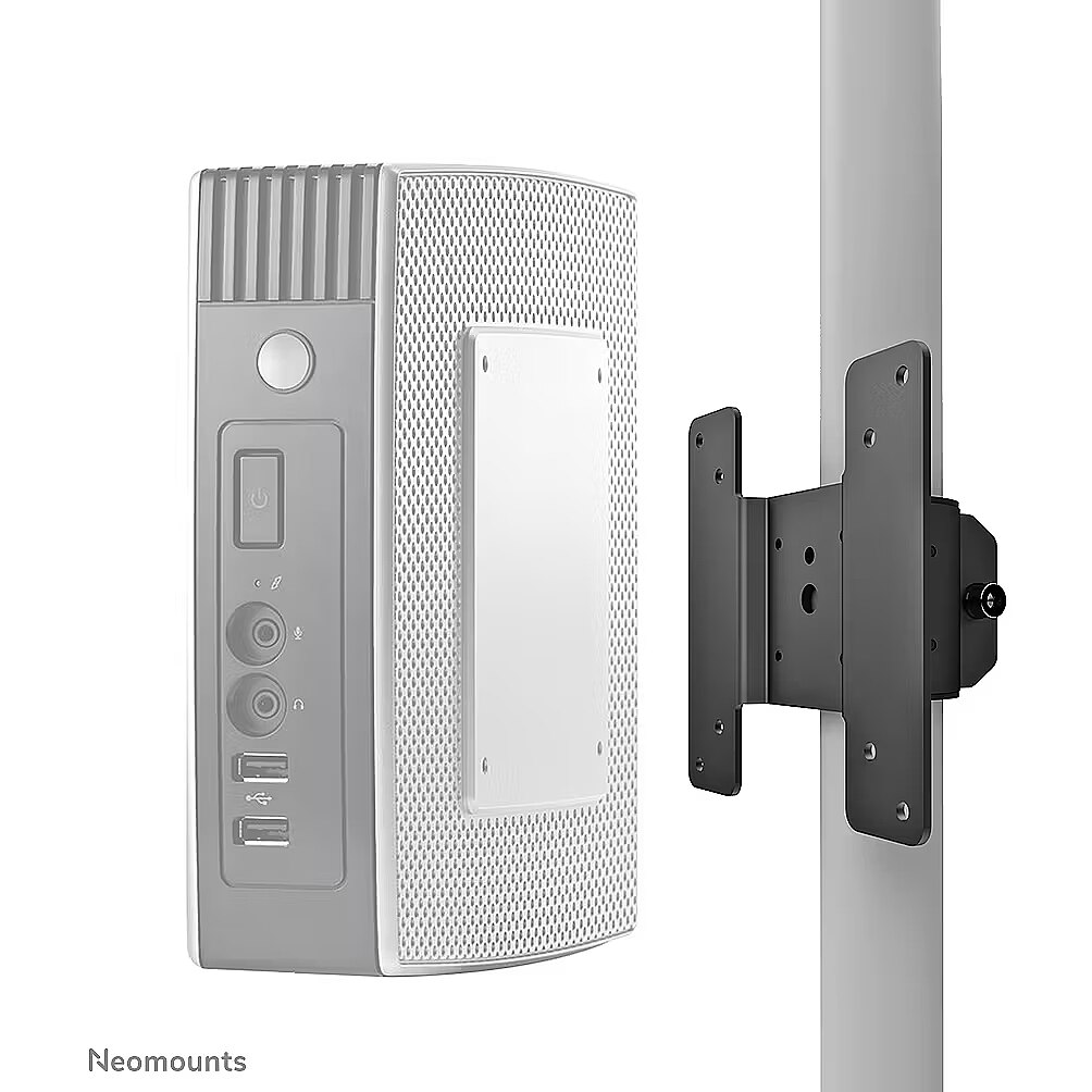 LongDesc - The Neomounts thin client mount, model THINCLIENT-05, allows you to mount a thin client computer to a monitor mount. A thin client mount creates a need and clean desk because its stored behind the monitor and doesn't use any valuable desk space. Increase the lifetime of your computer due to reduction intake dust and dirt. Keep the workplace clean without computers on the desk.This Neomounts thin client mount allows vertical installation of thin client computer between the screen and monitor mount. This product includes VESA 75 and VESA 100 hole pattern to simplify installation with flat screens and flat screen mounts. Hide your cables and keep the workplace nice and tidy.Easy to adjust in width and depth to fit most thin client PCs. The specifications listed show maximum and minimum width and depth of the mount.All installation material is included with the product.