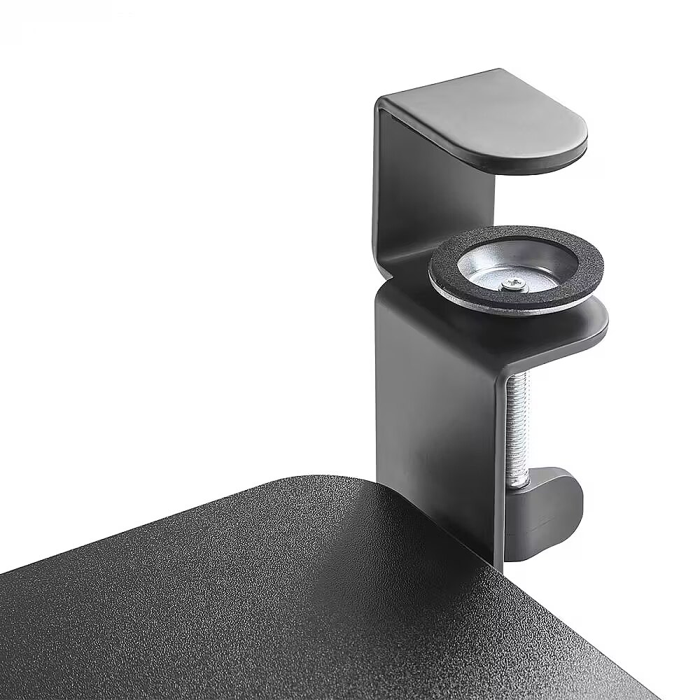 This solution saves desk space. Installation of the shelf using table clamps is extremely simple and does not require the use of any tools.