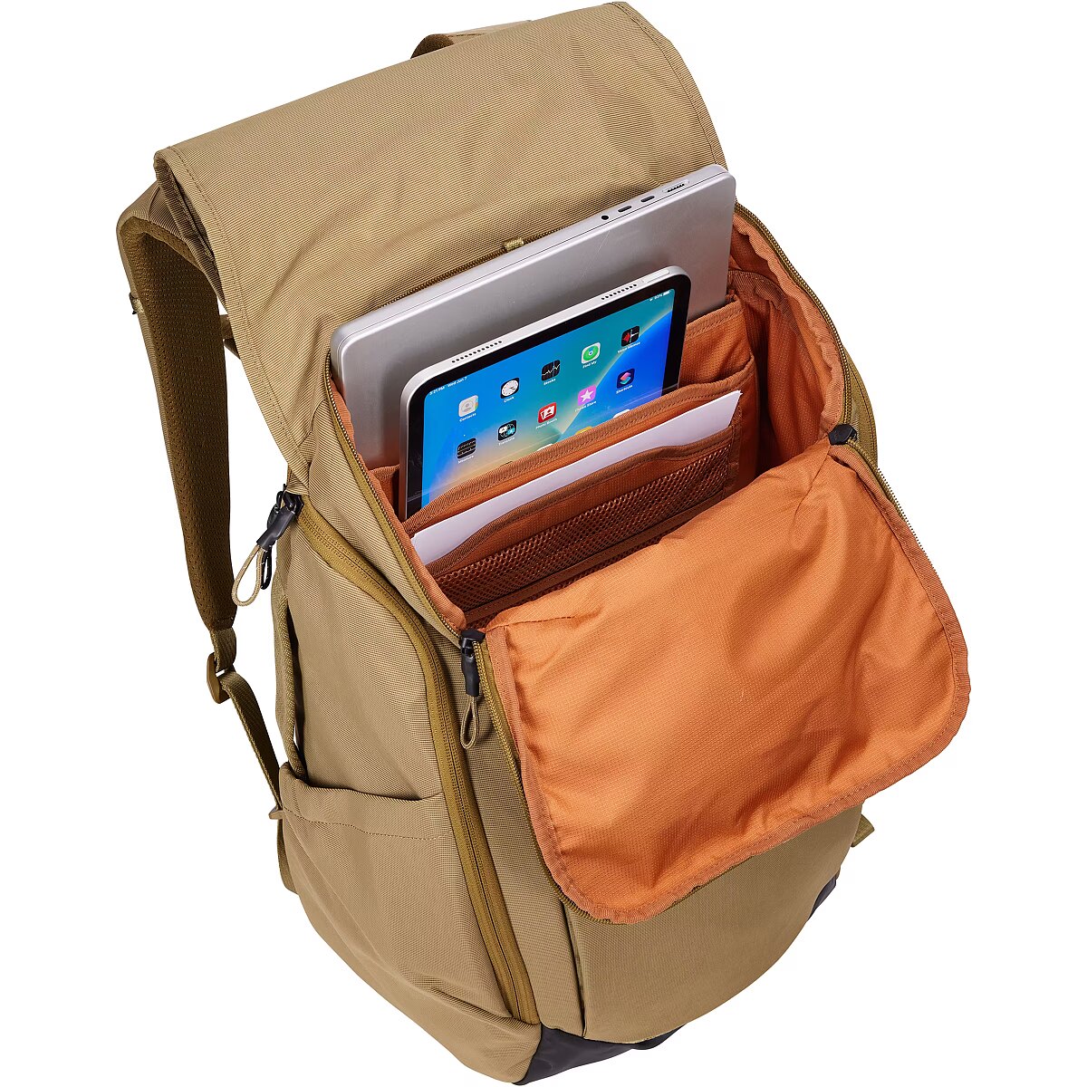 LongSummaryDescription - Thule Paramount PARABP3216 Nutria. Backpack type: Casual backpack, Product main colour: Khaki, Style: Urban. Width: 345 mm, Depth: 210 mm, Height: 515 mm. Package width: 355 mm, Package depth: 95 mm, Package height: 500 mm. Material: Nylon, Polyester. Master (outer) case width: 550 mm, Master (outer) case length: 365 mm, Master (outer) case height: 160 mm