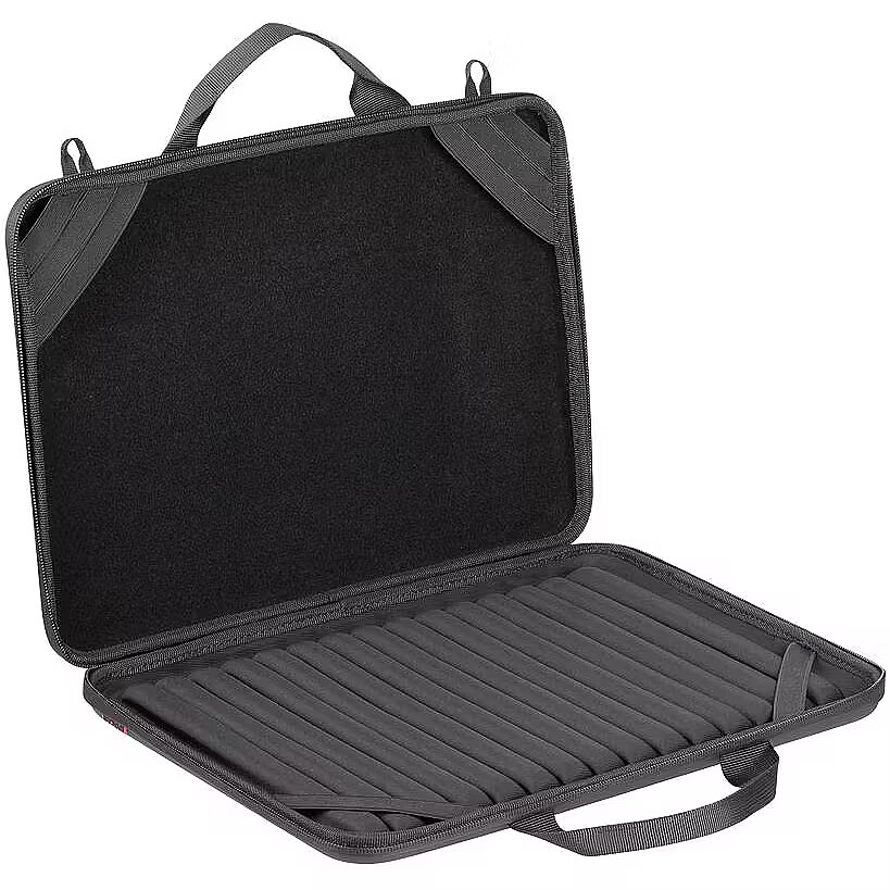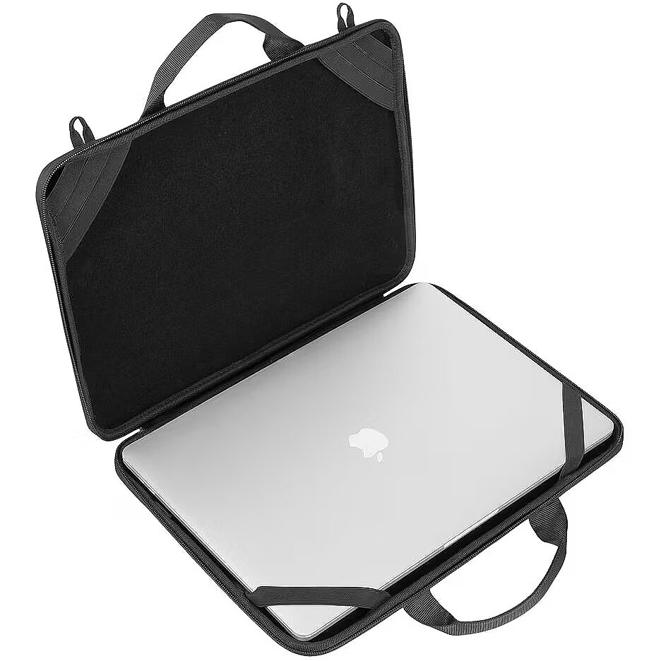 Description - 5130 black hardshell MacBook Air 15 and Laptop 14" case Laptop hardshell case up to 14-15.3" Product Features: • Universal case for MacBook Air 15 and Laptop up to 14" designed to carry and protect your device. • Manufactured using high-quality water-repellent material. • This slim bag features sturdy panels, made of shock absorbing EVA material, providing additional protection. • The bottom of the case is equipped with special pads inside to protect your laptop. Its ribbed design provides good ventilation and reduces heat build-up, when the laptop is in use inside the case. • Corners of the case are equipped with specialized fixing straps that securely hold the laptop in place. • Comfortable handles. • Removable, adjustable shoulder strap.