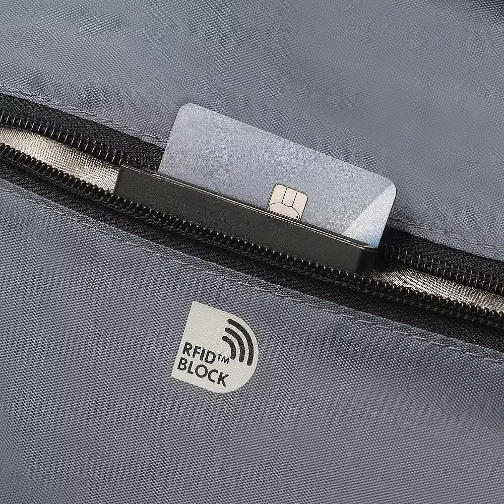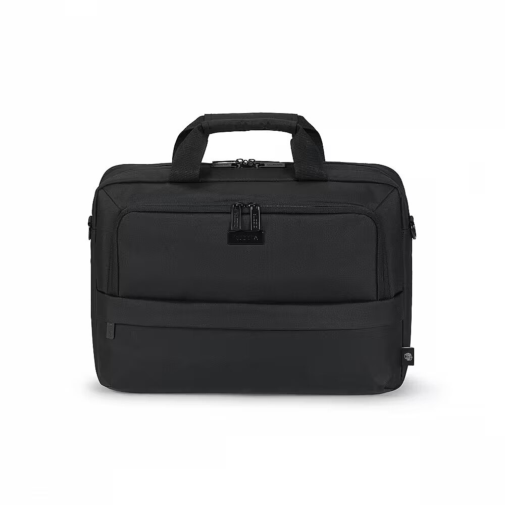 Description - Eco Top Traveller CORE 15-17.3" Laptop Bag A highly practical notebook bag with great features Today's actions shape tomorrow's world. That's why at DICOTA we are dedicated to developing environmentally friendly solutions and that's why we manufacture all products from our ECO collections from eco-friendly, recycled PET. We reuse up to 36 PET bottles, so you get an environmentally friendly product with a lifetime guarantee. Our PET products also have the quality, look and finish you know and love. The padded notebook compartment made of high-density foam (HDF) provides optimum protection for notebooks. The front pocket is specially designed for mobile accessories, while the zipped pocket offers space for the power supply and cable. The hidden compartment for a GPS tracker means you can always keep an eye on your bag, while the zipped pocket with RFID blocking protects personal data from unauthorized access. Important documents can be safely stored in the rear document pocket, while the padded shoulder strap ensures comfortable carrying. The bag is completed with a waterproof material that reliably protects the contents from the elements. Made from 8 recycled PET bottles Padded notebook compartment with high-density foam (HDF) Front compartment with pockets for mobile accessories Zippered pocket for power supply and cable Hidden compartment for GPS tracker Zippered pocket with RFID blocking Document pocket on the back Padded shoulder strap Water-resistant material