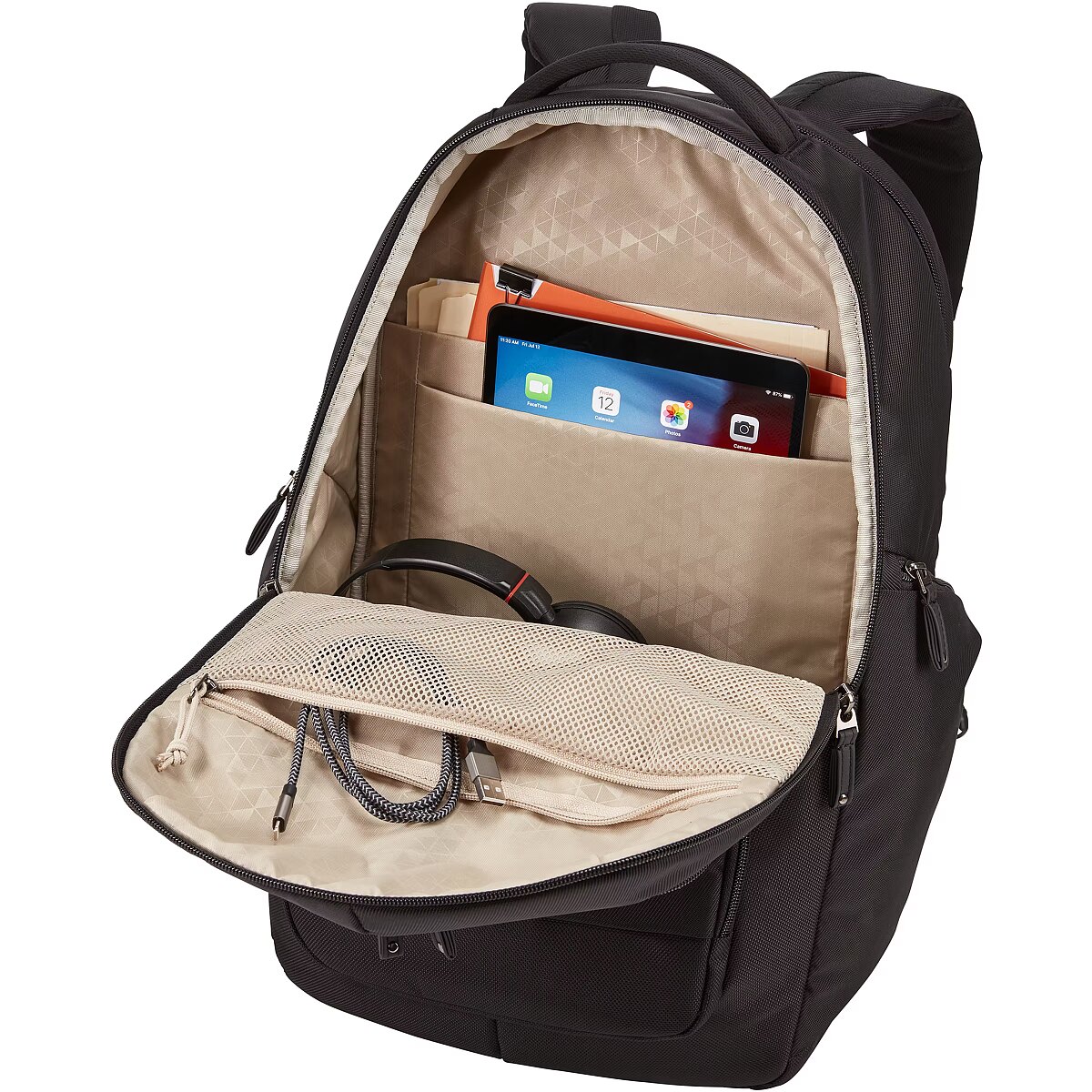 Features - Interior pockets - Accessory pocket, Business Card, Cell phone pocket, Document pocket, Tablet pocket, USB-stick pocket