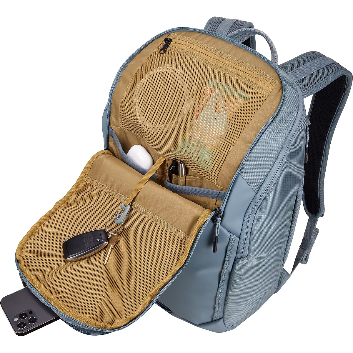 Features - Interior pockets - Cell phone pocket, Document pocket, Key pocket, USB-stick pocket, Wet pocket, Zip pocket