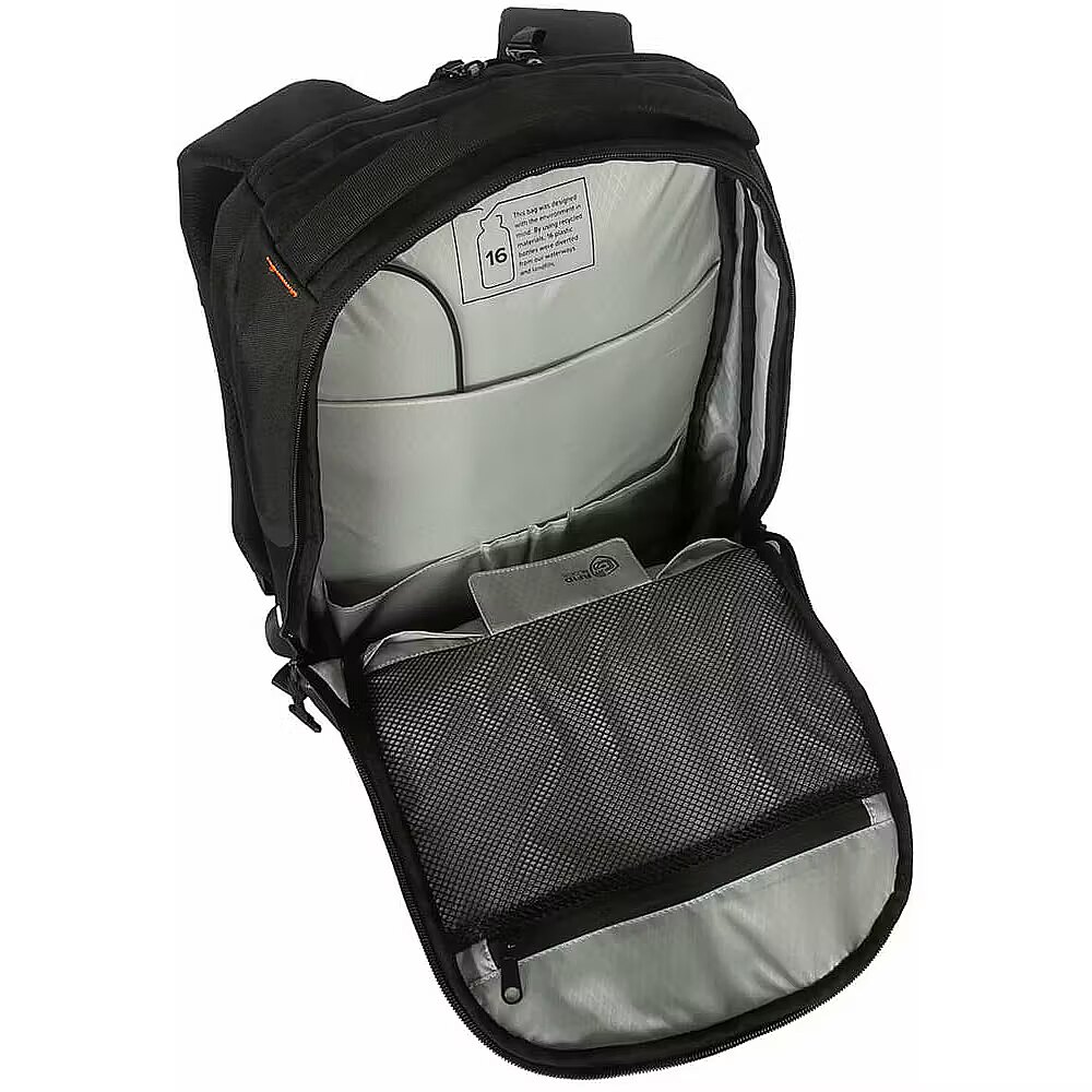 LongDesc - Built for the busiest days, the 15-16” Commuter EcoSmart ® Backpack is packed with protective and functional features to enhance commuting comfort and on-the-go convenience. Equipped with a dedicated, lockable laptop compartment and expandable main compartment, this backpack also comes with plenty of pockets to carry it all. Using fabric woven from recycled water bottles, 16 to be exact, the 15-16” Commuter EcoSmart ® Backpack is thoughtfully designed to protect your work essentials while also protecting the environment.Whether riding by train, subway, or bike, you’ll need a pack that’s comfortable – so we’ve engineered this bag for ultimate ease – including ergonomic shoulder straps, a padded air mesh back panel for improved airflow and lumbar padding, an adjustable sternum strap, and a luggage trolley strap when hauling rolling luggage.Traveling after dark? This pack also features reflective accents for increased visibility.Protection From the Inside OutThis laptop backpack offers many protective features, including its design, materials, and construction. A padded laptop compartment protects your tech from the inside. Meanwhile, lockable zippers on the laptop and main compartment help deter theft on the outside. Thoughtful extras like reflective accents and a hidden back pocket make this the ultimate commuting companion.Take a Load OffEngineered for the long haul with ergonomic shoulder straps, a padded back panel, adjustable sternum strap, and trolley strap to set on rolling luggage, this bag delivers on your commuting comfort.A Commuter’s DreamNot all commutes are the same. Whether you need a slim bag for tight spaces or something bigger for all your day’s needs, this bag can accommodate. It even offers plenty of pockets - including a hidden valuables pocket - plus an easily accessible patent-pending USB-C connector to keep you properly charged on your journey.The Bottle RebornYou no longer have to choose between good looks and eco-friendly design. This sustainable backpack was designed with the environment in mind. By using GRS-certified recycled materials, 16 plastic bottles were kept out of our waterways and landfills. This material was then shredded, spun into yarn, and sewn into this eco-friendly laptop backpack's fabric.