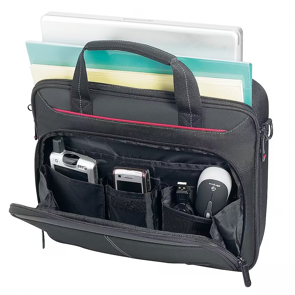 Если хотите, чтобы рядом с портативным компьютером можно было поместить мышь и блок питания, неиспользуя дополнительные секции сумки, выбирайте ту, которая немного превышает размер вашего портативного компьютера.