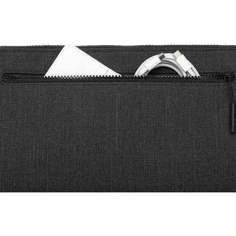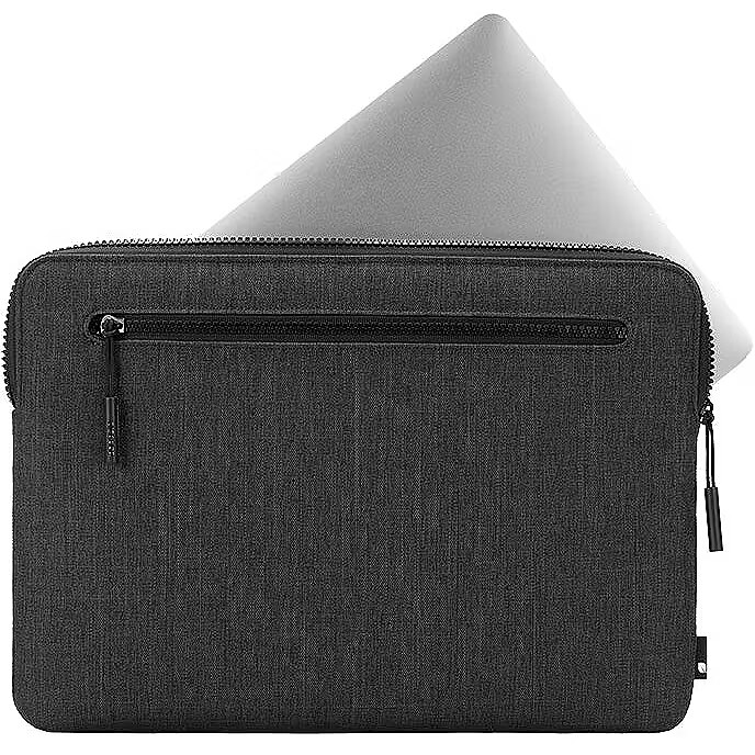 LongDesc - The Incase Compact Sleeve's premium design beautifully complements the streamlined form of your MacBook, while its plush faux-fur lining helps prevent scratches and bumps. We designed the Compact Sleeve with refined practicality that focuses on function and convenience, like an unexpected yet fundamental pocket that fits iPhone or a MacBook charger (cable and adapter) and leather zipper pulls. The minimal design is complimented by the refined, Woolenex exterior, woven from both 300D and 600D polyester that retains a slim form with the high-tensile strength meaning you can use it consistently over extended lengths of time. The unique weave results with a lightweight, durable textile with beautiful color depth that propels the elements.