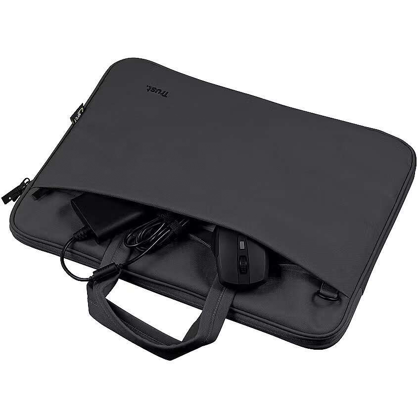 Description - TRUST Eco-friendly Slim laptop bag for 16 inch laptops Eco-friendly slim laptop bag made of recycled PET materials; for laptops up to 16 inches
