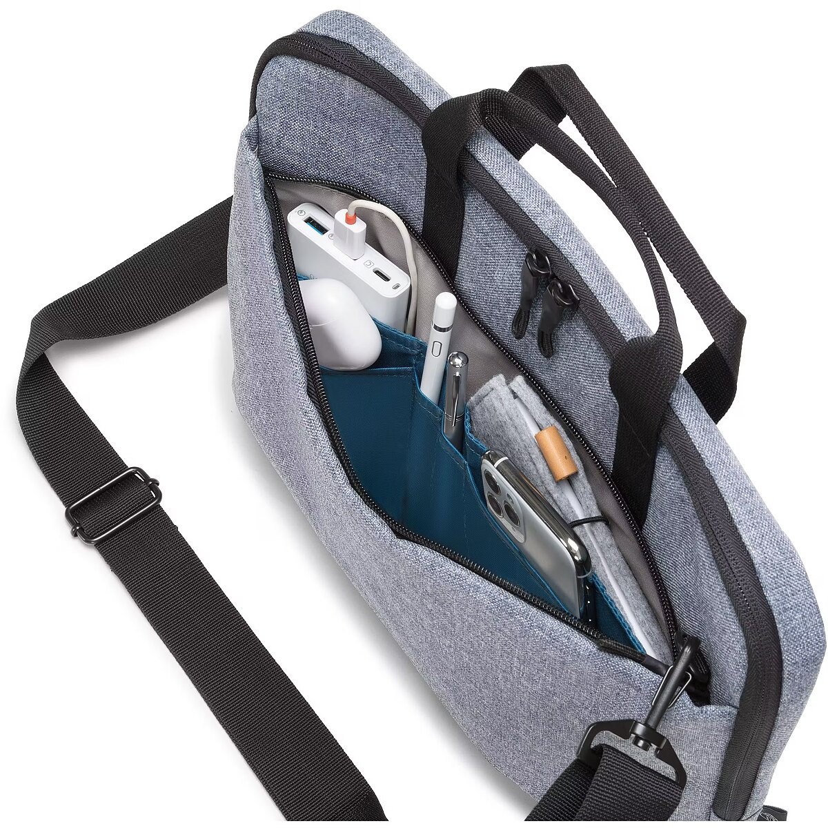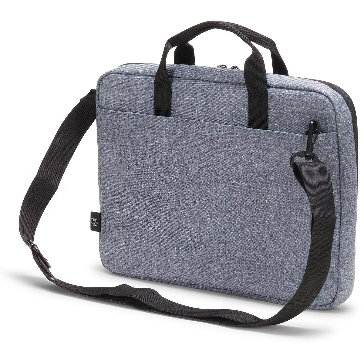 Description - Notebook bag Eco Slim Case Motion 14-15.6 inches, blue denim The Eco Slim Case MOTION is a light, slim laptop case. Devices between 14 and 15.6" are well protected in the padded notebook compartment. The slip pocket provides reliable protection for tablets up to 12.9". The case is comfortable to carry thanks to its padded carrying handle and adjustable shoulder strap. The extra compartment on the back is especially handy for easily storing documents. Your smartphone or other smaller items like cables, pens or chargers can be stored in the convenient front pocket, so they are always on hand. The bag is made of water-repellent material to protect the contents even on rainy days. The Eco Slim Case MOTION is therefore perfect for you if you are always on the go and want to support the recycling of PET bottles with an eco-friendly case.
