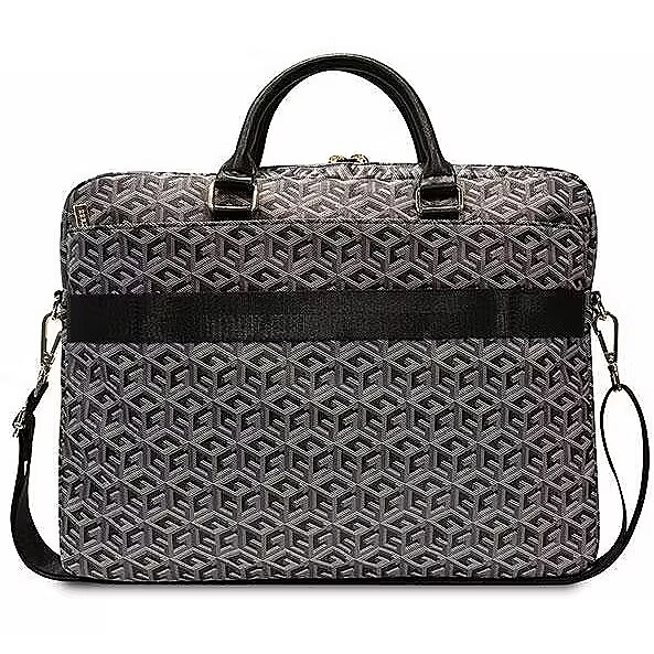 Description - Guess GCube Stripes laptop bag An exceptionally stylish and tasteful collection of protective bags has been created for people who are looking for an accessory that can protect their computer in a fashionable style. The bag is dedicated to laptops with a screen diagonal of up to 16". The G Cube collection signed by the Guess fashion house is a guarantee of the highest quality of workmanship with unique design and designer aesthetics. The collection has been decorated with the highest quality G Cube print, which makes it a perfect proposition for demanding people who value an exclusive look and designer accessories. The G Cube motif, characteristic of the Guess fashion house, is a very desirable pattern taken straight from the latest collections of this brand. A patch with a large Guess brand logo placed on the central bag emphasizes the elitism of the collection, is its beautiful decoration and at the same time is a confirmation of the excellent quality and authenticity of the collection.