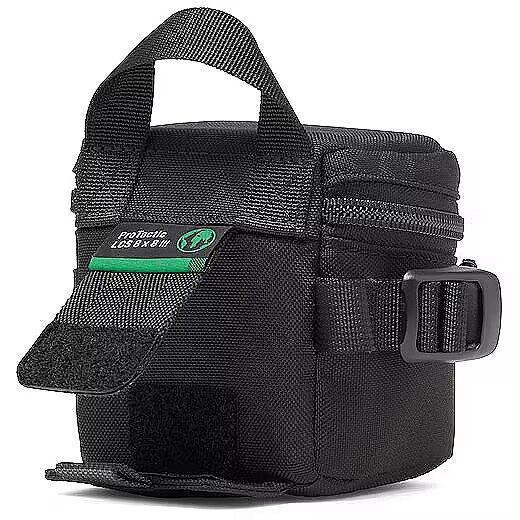 Introducing the ProTactic LCS 8 x 8 III, designed for the working photographer shooting events and other jobs all day, largely outdoors. This lens case is sized with an internal diameter of 8 cm and an internal height of 8 cm, perfect for smaller lenses. The dual-density foam provides a snug fit with a harder exterior for bumps and a softer interior for a secure hold. The compression strap allows for a customized fit, ensuring your lens stays in place. Versatile Carry Options