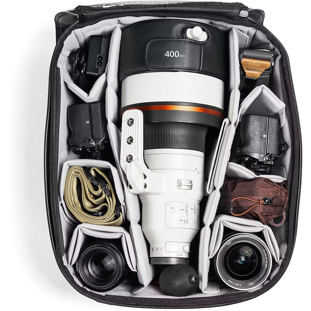 FlexFold vaheseinad võimaldavad kohandatavat organiseerimist ja kaitset. Maksimaalse mahutavuse saavutamiseks aseta esemed vertikaalselt virna. Ujuv tasku on mõeldud objektiivikorgi, filtri ja muude väikeste esemete jaoks. Mugav kaasaskandmine
