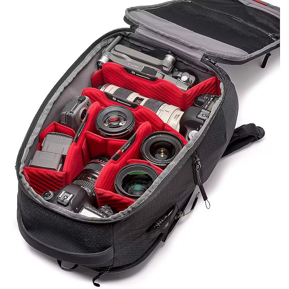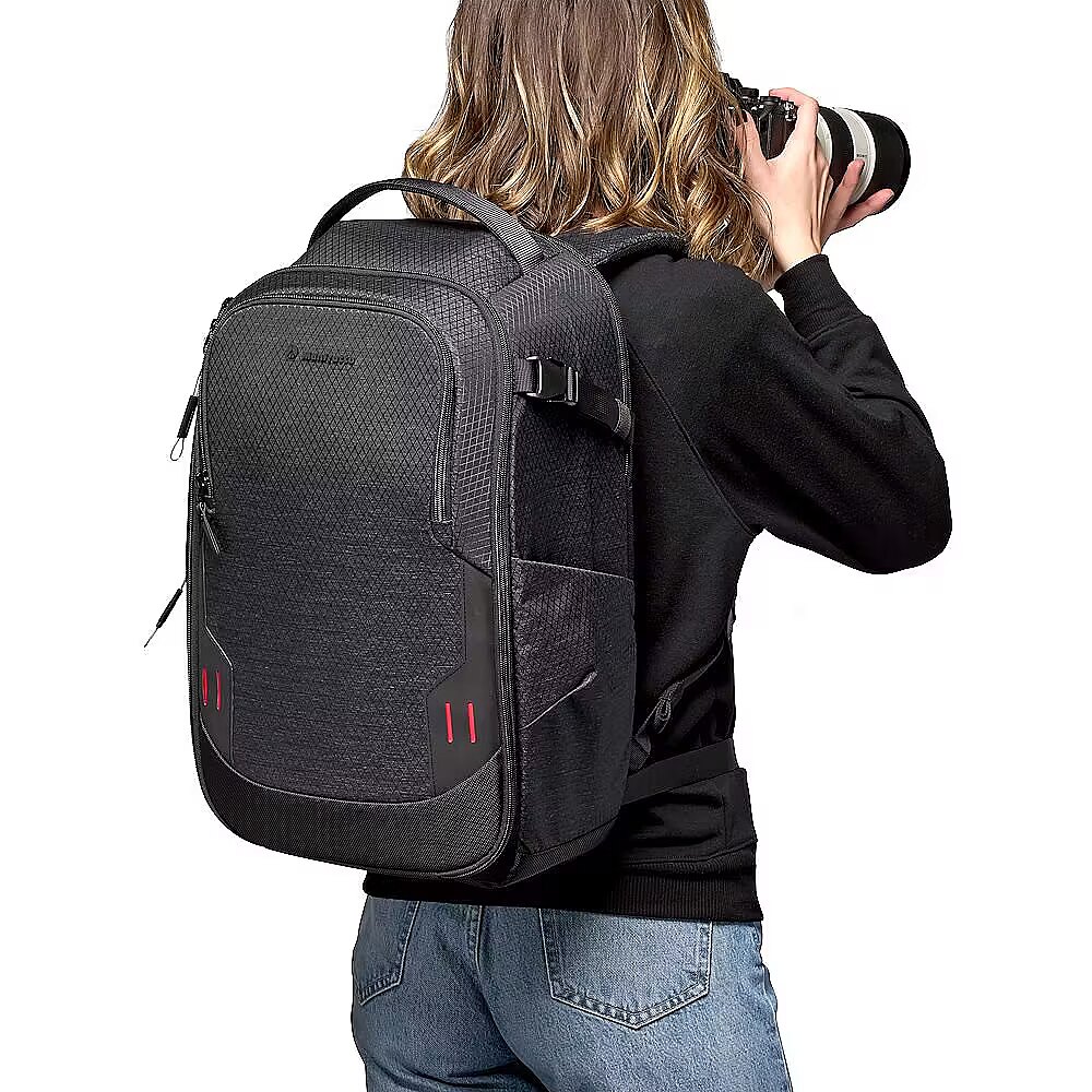 description_en - The Manfrotto PRO Light Frontloader camera backpack M is a professional camera bag specifically designed to provide unparalleled gear protection to fit the preference and workflow of any professional photographer or filmmaker. For professional photographers and filmmakers working on assignments, the camera bag that carry and protect their cameras are equally crucial in making the creative process happen. The PRO Light backpacks usher in the all-new M-Guard™ Protection System specifically designed and laboratory tested to guarantee the highest level of protection and shock resistance especially on areas of the bag where protection is most crucial. M-Guard™ dividers are made of high-density EVA foam that provide exceptional shock absorption while maintaining a super slim profile . In addition, the SAS-TEC, a viscoelastic memory foam and multi-impact endurance, adds a structural reinforcement on the base of the backpack provide extra shock absorbing properties. For an even better worry-free experience, a TSA padlock can be used to secure the steel wire puller to close the main compartment. The PRO Light Frontloader offers a fully padded gear compartment with customizable interiors that can be accessed through a front access door. A secondary single side door offers quick access to most used gear that can fit a full frame camera without portrait grip with an attached 70-200mm f/2.8 lens with a service pocket on the interior panel for crucial small accessories. It features a side tripod attachment, a checkpoint friendly 15” laptop compartment, adjustable chest and waist straps, along with a DuoFace sun and rain cover for moisture and heat protection.