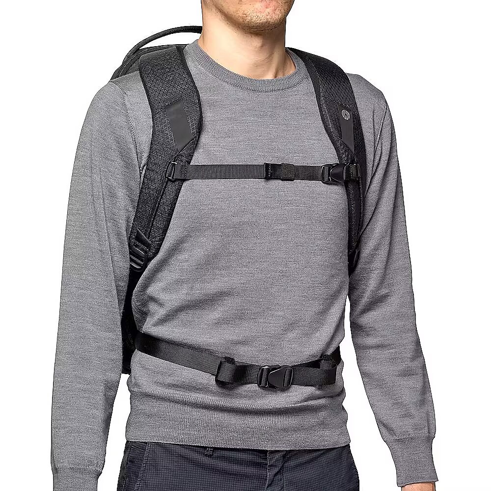 A compartment with multiple pockets for small accessories is positioned on the front to give you fast access to all your working accessories. This backpack is built to keep professional gear protected while providing optimal comfort even in long periods of carrying . The harness system not only distributes weight evenly from the shoulders to the waist and hips but also maximizes breathability thanks to a contoured EVA mesh panel. The backpack is made of water-repellant RipStop nylon/polyester fabric with reinforcement yarns to achieve a balance of light weight, unique look, and high capacity performance. Duraflex hardware, YKK zippers, hypalon reinforcement, trims and pullers make the pack both ultra-lightweight and strong enough to withstand the most intense use to ensure long-term protection for large amounts of gear. It also conveniently comes with a DuoFace sun/rain cover, which provides extra protection in rough weather and reflects sunlight, keep gear cool and dry all day long. Holds full-frame CSC/DSLR and 70-200/2.8 lens attached New M-Guard™ provides the highest level of gear protection Full front access & side access to 100% padded gear compartment SAS-TEC structural base reinforcement for extra shock protection Side tripod attachment