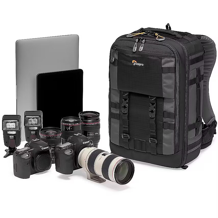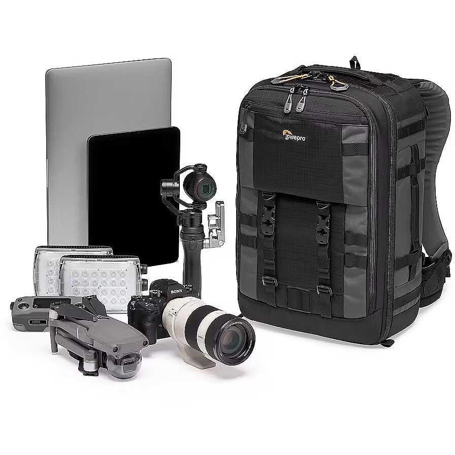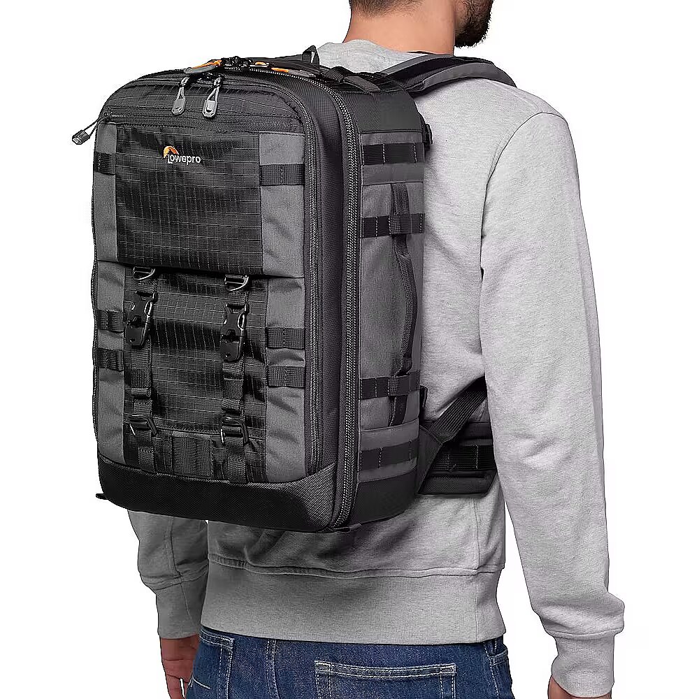 description_en - Pro photographer's backpack made of reycled fabrics, purpose-built to organize and protect the maximum amount of gear in a carry-on design. Carry-on compatible. Back country ready. Made of 75% recycled fabrics Fits Pro Mirrorless or DSLR with 70-200mm, 4-5 extra lenses MaxFit divider system for maximum capacity & snug protective fit Space for 15" laptop, 10" tablet Carry-on ready: meets standard carry-on requirements There are times when you have to be ready for the long haul. While managing a tight schedule, transporting your camera and video equipment alongside multiple editing devices can become cumbersome. You need carry-on compatibility for air travel and all-day comfort for carrying heavy loads to remote shoots. Lowepro’s widely popular Pro Trekker backpack does this job with ease. Designed with thoughtful organization and modern outdoor ergonomics in mind. It also includes an AW cover for added protection from the elements. The Pro Trekker BP 350 AW II professional camera backpack is part of Lowepro's efforts towards sustainability through the Green Line project. It has been updated to include 75% recycled fabrics (consisting of webbing, bindings, zipper tape, cords, and meshes) to reduce its negative impact on the environment. This Green Line score is measured following the GRI 301-2 standard, as a percentage of the recycled yarn used, compared to the total weight of yarn.