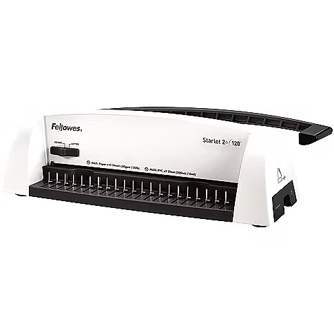 Description - Starlet 2+ Comb Binder 12 sheet punch capacity, 120 sheet binding capacity with a maximum comb size of 16mm 2 position edge guide aligns sheets accurately Patented comb & document measure for quick selection of the correct size supplies Long punch lever requires minimum force for easy punching Independent punch and comb opening mechanisms for more productive binding