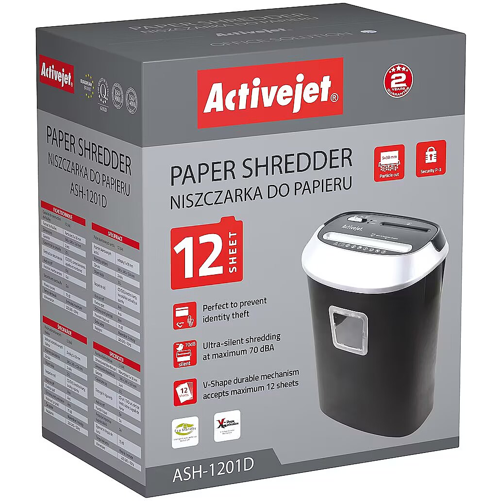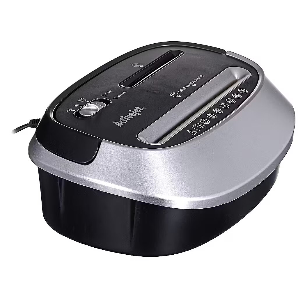 productName - Shredder Activejet ASH-1201D, P-3, 25 l, 5x38 mm shreds, black and silver.