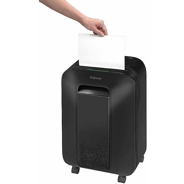 Description - Powershred® LX201 Micro-Cut Shredder Next generation shredding offers unmatched productivity and 100% Jam Proof performance Intellibar™ responsive technology provides in-use feedback that maximises shredder performance – preventing interruptions by indicating when bin & sheet capacity is nearing the limit, or the run time is close to being reached Safesense® Technology offers greater peace of mind in home environments and Sleep Mode automatically powers down the shredder after periods of inactivity Micro-cut security shreds each sheet of A4 paper into over 2000 particles (2x12mm P-5) 12 sheet shredding capacity and 22 litre pull-out bin Shreds several hundred sheets of paper over the 10-minute run time