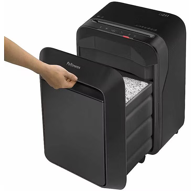 LongDesc - The essential shredder for any office, the LX211 micro-cut paper shredder shreds 15 sheets of A4 paper per pass into 2 x 12 mm micro-cut particles (security level P-5), so you can be sure that your confidential work documents have been disposed of securely. The paper shredders powerful micro-cut cutters will not only shred your documents but can shred staples, paper clips and credit cards too. Maximise shredding performance with the LX211's Intellibar responsive technology which provides in-use feedback that maximises shredder performance – preventing interruptions by indicating when bin & sheet capacity is nearing the limit, or the run time is close to being reached. The Powershred LX211 paper shredder features the Fellowes 100 percent jam proof system to eliminate paper jams and provide relief from the number one shredding frustration. Designed with safety in mind, your micro cut paper shredder will automatically disable when hands come into contact with the opening, stopping the cutters immediately. The LX211 paper shredder has a long run time and will shred continuously for up to 20 minutes before requiring a 15 minutes cool down period. Fellowes shredders are built to last with solid steel cutters, a powerful motor and parts that are engineered to outperform our competitors.