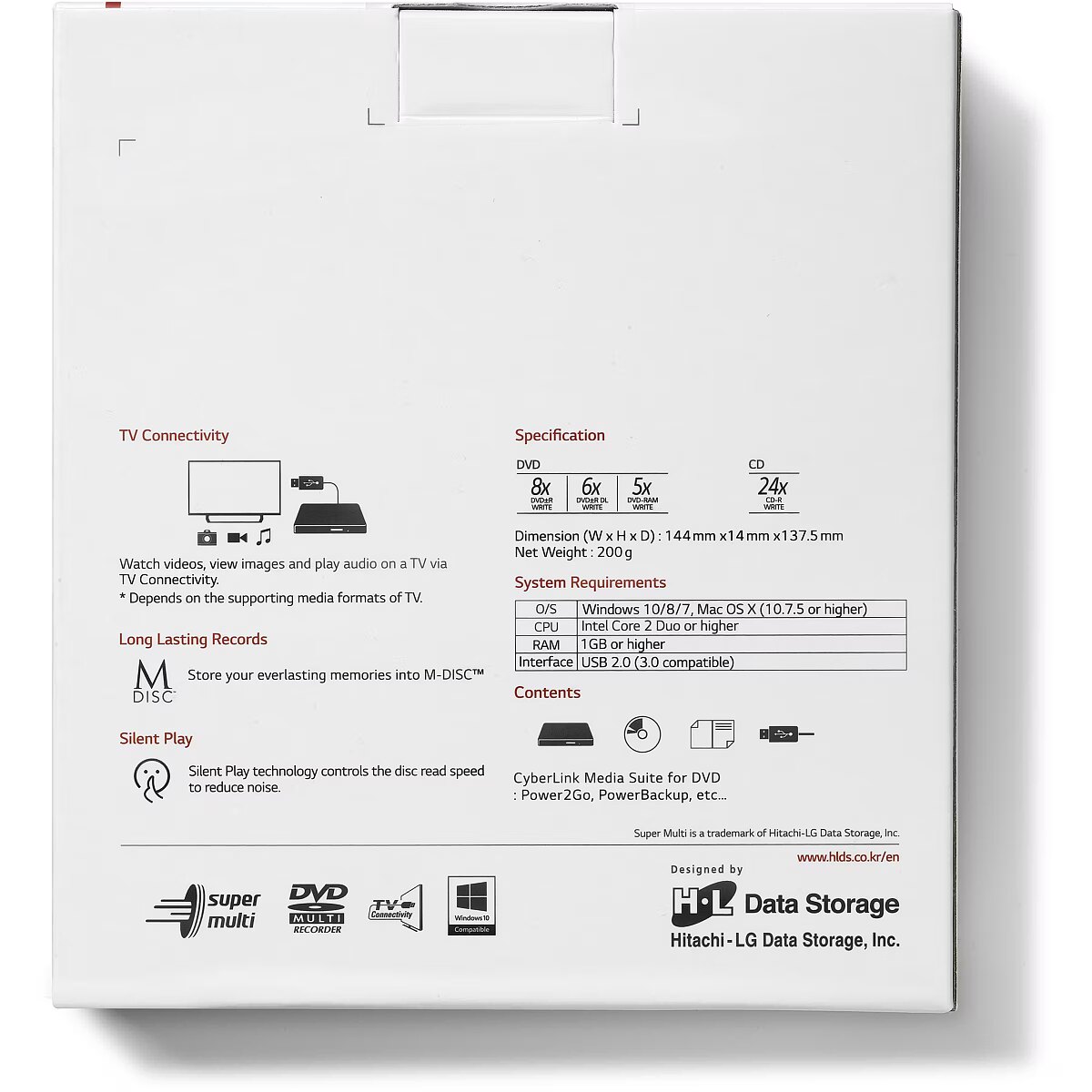 Name - H.L Data Storage | Ultra Slim Portable DVD-Writer | GP60NW60 | Interface USB 2.0 | DVD±R/RW | CD read speed 24 x | CD write speed 24 x | White | Desktop/Notebook