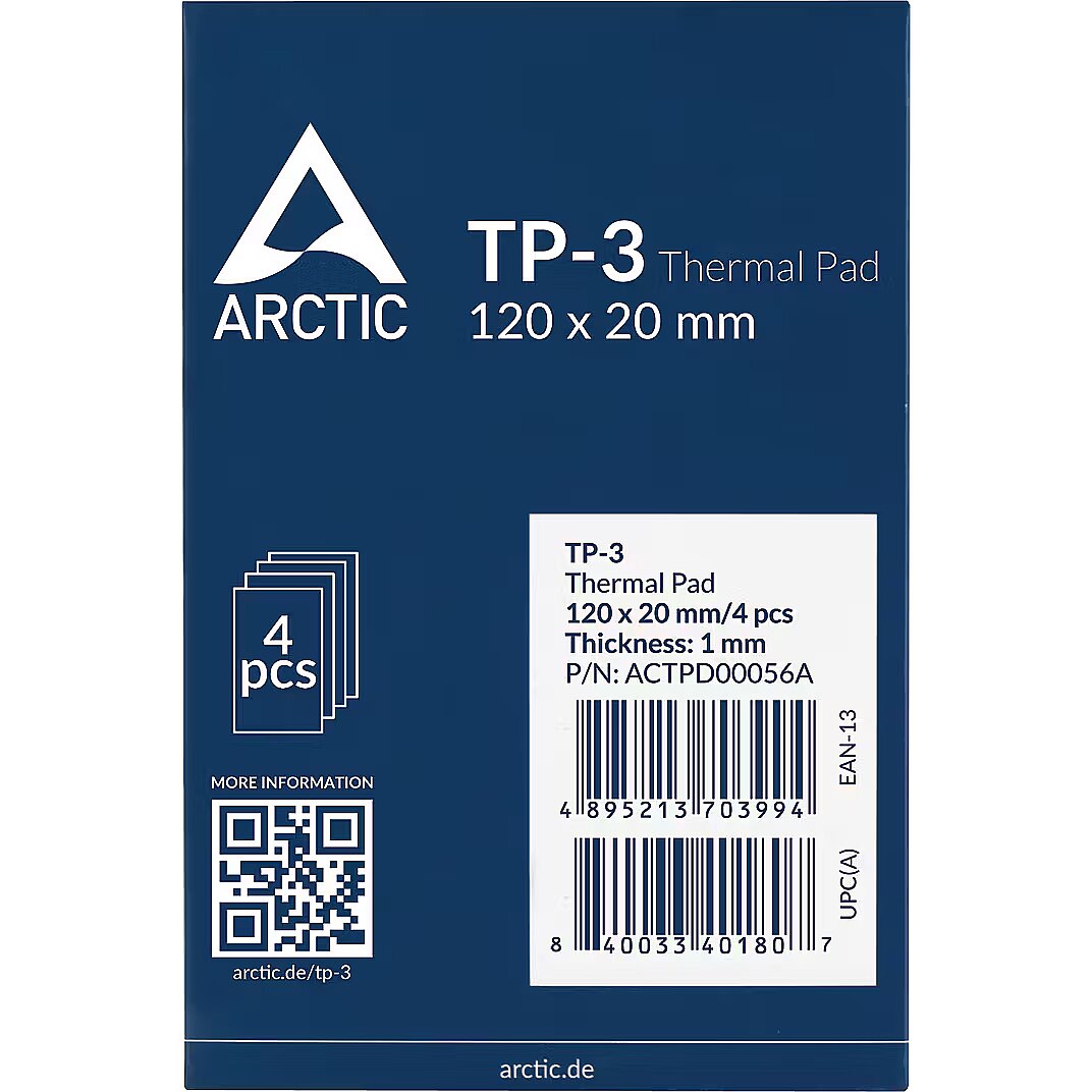 LongSummaryDescription - ARCTIC TP-3 Premium Performance Thermal Pad 120 x 20 mm, 1 mm. Type: Thermal pad, Product colour: Blue. Width: 120 mm, Depth: 20 mm, Height: 1 mm. Quantity per pack: 4 pc(s), Package width: 95 mm, Package depth: 140 mm