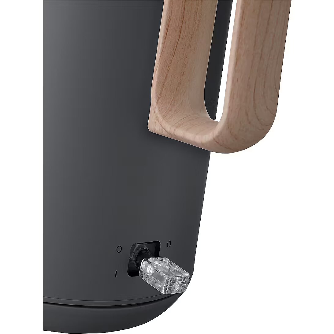 Czajnik wyposażony jest w duży otwór do napełniania i wyraźny wskaźnik wody umożliwiający natychmiastowy podgląd ilości wody w środku. Wyjmowany filtr osadowy sprawia, że przegotowana woda jest zawsze czysta i wolna od niepożądanych cząstek, co wpływa na lepszy smak Twoich napojów. Ukryta grzałka zapewnia szybkie i równomierne podgrzewanie wody, a kontrolka pracy informuje o stanie nagrzewania. W pełni obrotowe złącze środkowe sprawia, że czajnik jest łatwo dostępny pod dowolnym kątem, co ułatwia obsługę. Schowek na przewód zasilający w podstawie pomaga utrzymać porządek i porządek w kuchni. Bezpieczeństwo przede wszystkim