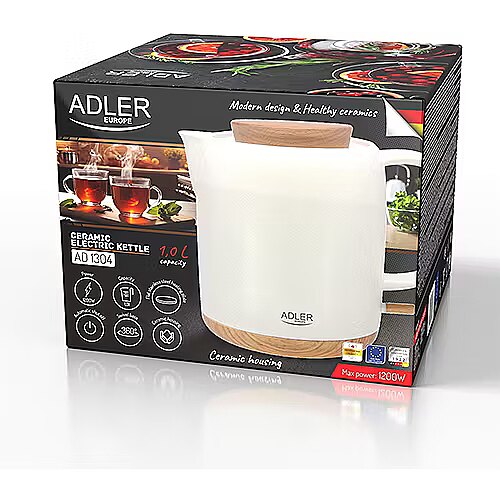 Name - Adler Electric Kettle | AD 1304 | Electric | 1200 W | 1 L | Ceramic | 360° rotational base | White