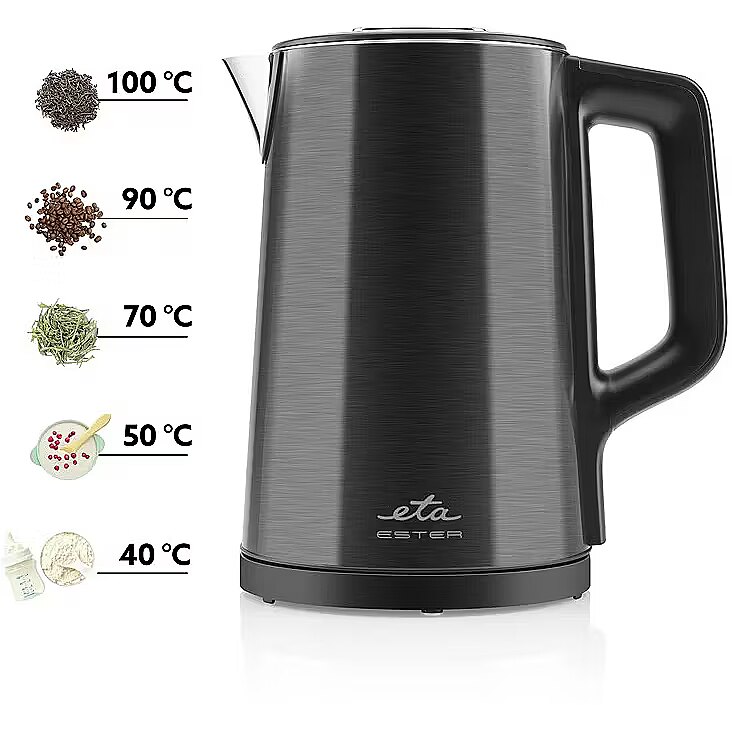Name - ETA Kettle | ETA459790000 Ester | Electric | 2200 W | 1.5 L | Stainless steel | 360° rotational base | Black