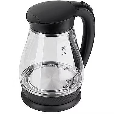Name - Adler | Kettle | AD 1274 | Standard | 2200 W | 1.7 L | Plastic/Glass | 360° rotational base | Black/ transparent
