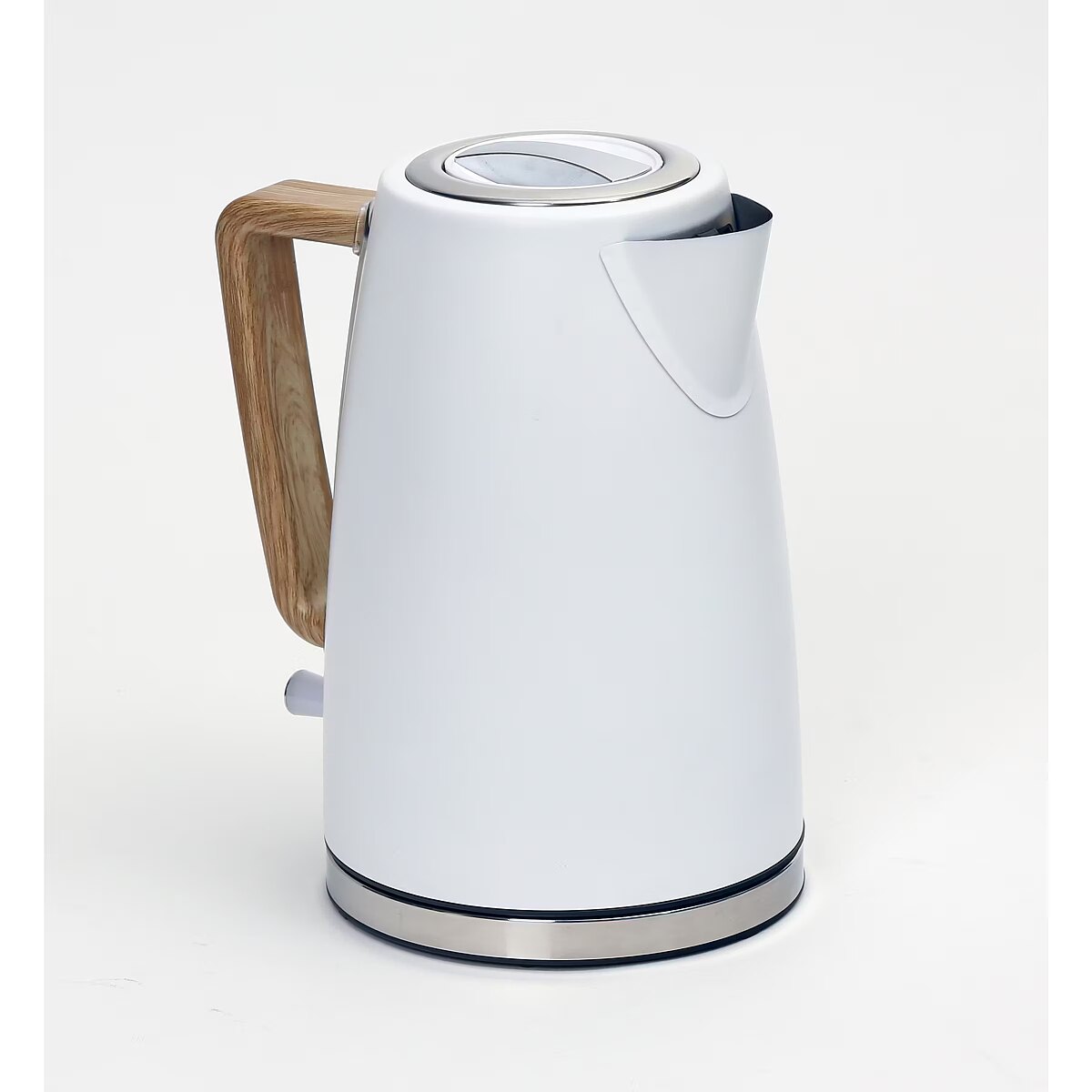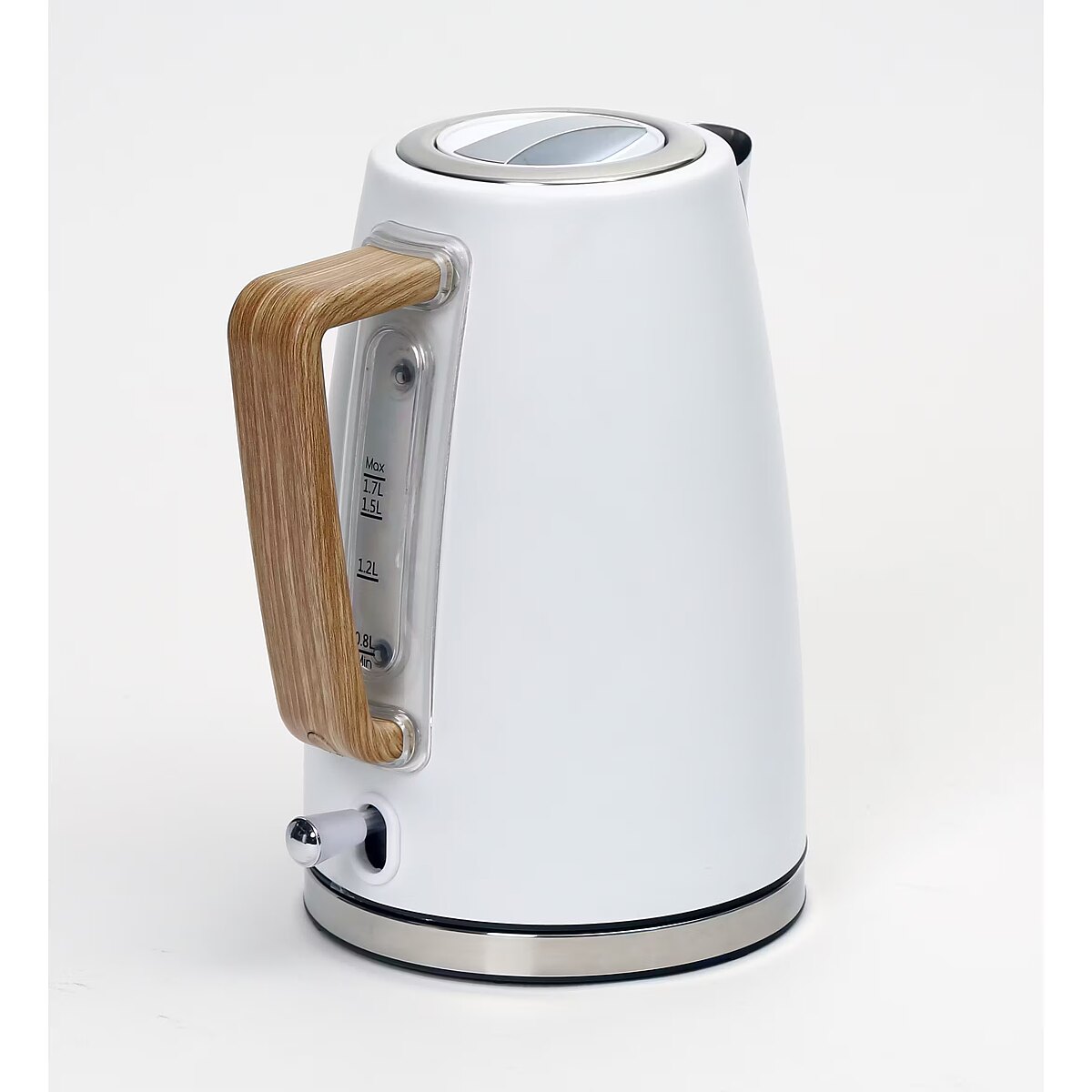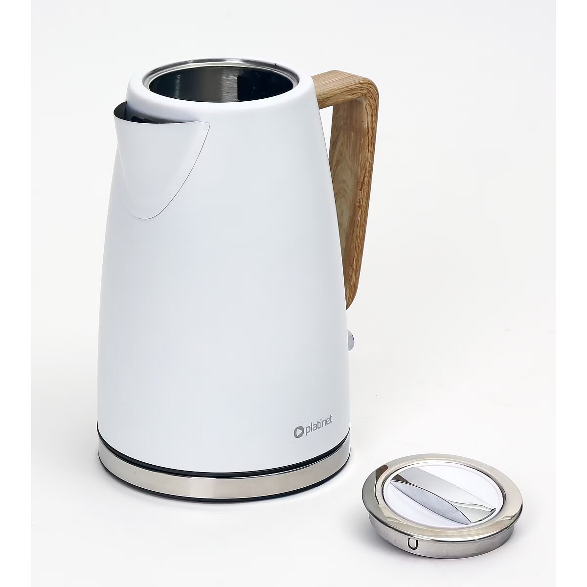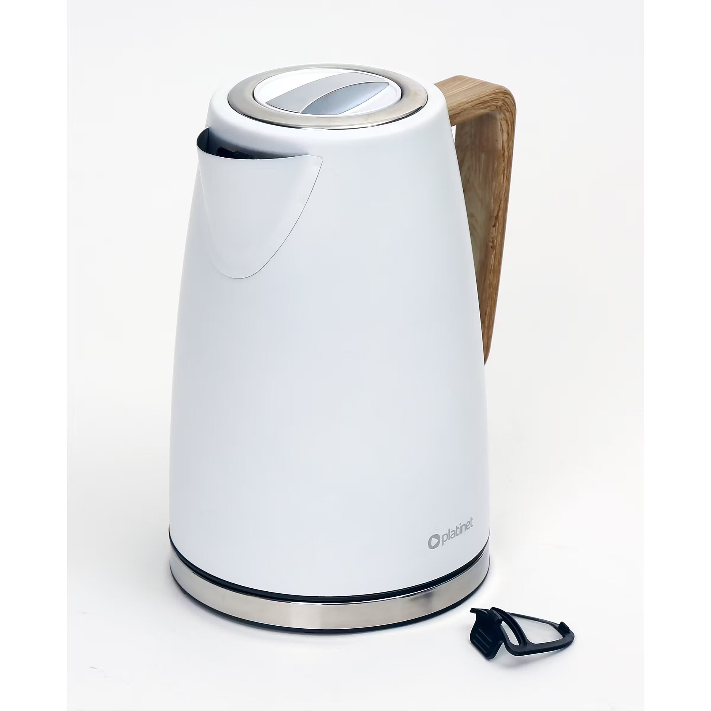 Katlakivivastane filter takistab katlakivi sattumist klaasi, mis võimaldab Sul nautida tõeliselt puhast vett ja selget infusiooni. Mahutavus: 1,7 l Võimsus: 2000 - 2400 W Materjal: roostevabast terasest korpus valge katte ja puidust käepidemega Kaabli pikkus: 75 cm