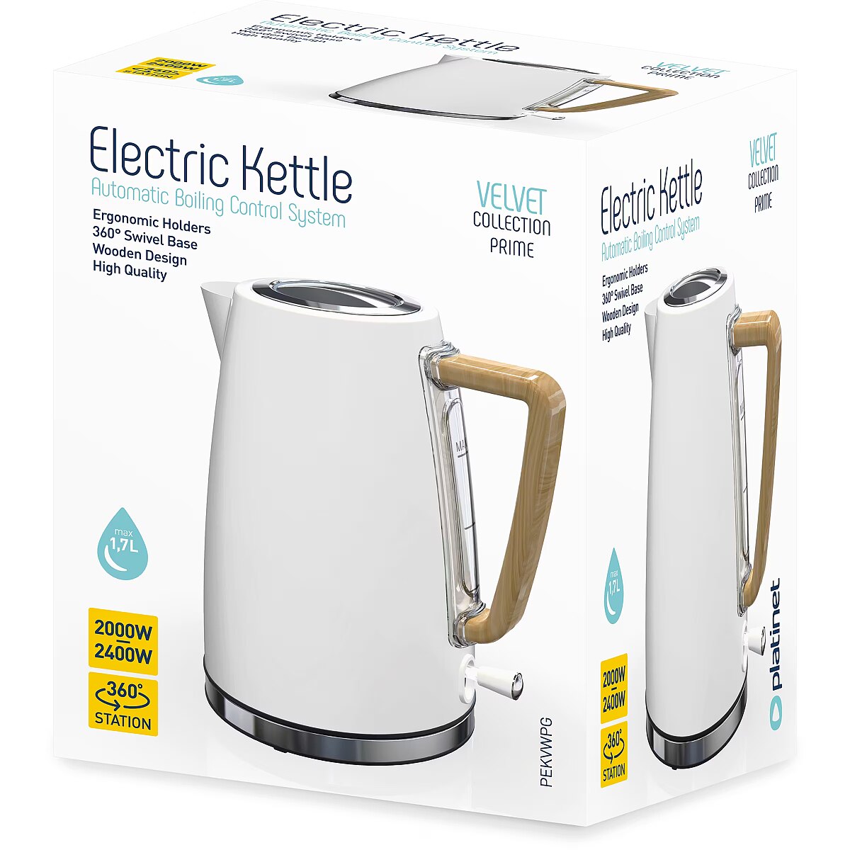 The anti-scale filter prevents scale from entering the glass, allowing you to enjoy truly clean water and a clear infusion. Capacity: 1.7 l Power: 2000 - 2400 W Material: stainless steel housing with white cover and wooden handle Cable length: 75 cm