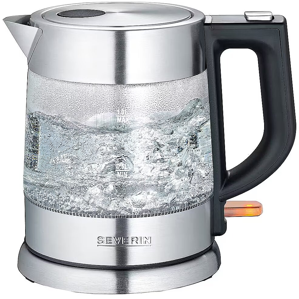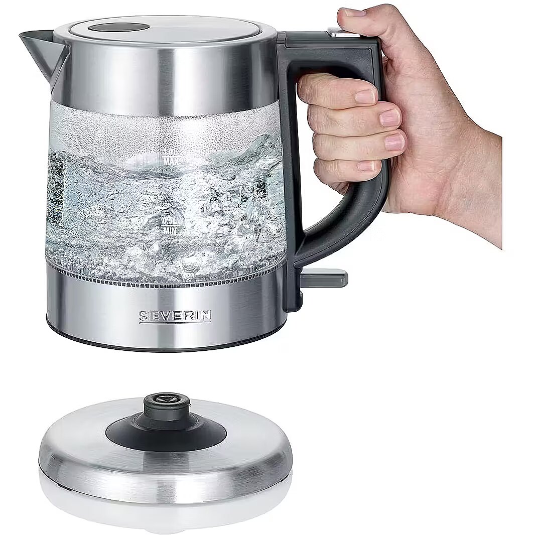 MediumDescription LV - Šī praktiskā tējkanna ātri un efektīvi uzsildīs ūdeni gardiem karstiem dzērieniem, piemēram, tējai vai šķīstošai kafijai. Severin piedāvā plašu tējkannu klāstu, lai tās atbilstu visām gaumēm.• Augstas kvalitātes nerūsējošā tērauda korpuss ar stikla krūzi