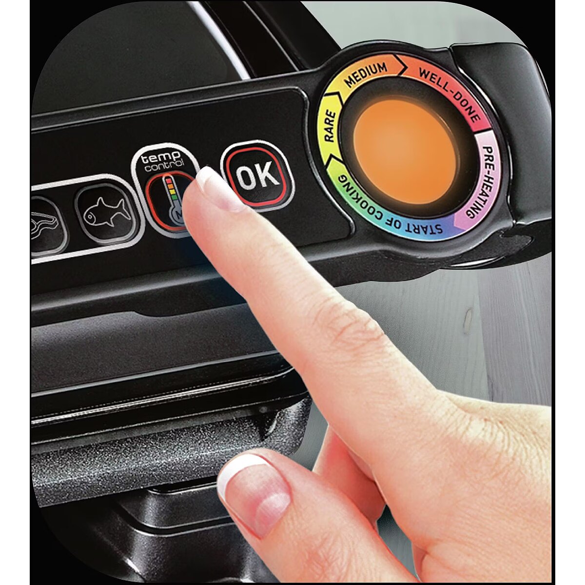 LongDescription ET - Tehnoloogia „Automatic Sensor Cooking“ abil tuvastab OptiGrill+ kohe küpsetusplaadil olevate ühikute hulga, määrab nende paksuse ja reguleerib selle alusel temperatuuri ja küpsetamise aega. Indikaatortuli ja helisignaal võimaldavad jälgida suurt täpsust nõudvate toitude valmistamist ja valmistada liha sellisel küpsusastmel nagu soovid: pooltoores, keskmise küpsusastmega või läbiküpsenud. 6 küpsetusprogrammi maitsva toidu valmistamiseks: burgerid, kana, võileivad, vorstid, punane liha ja kala ning lisaks sellele külmunud toidu režiim ja nelja temperatuuriastmega käsitsirežiim.