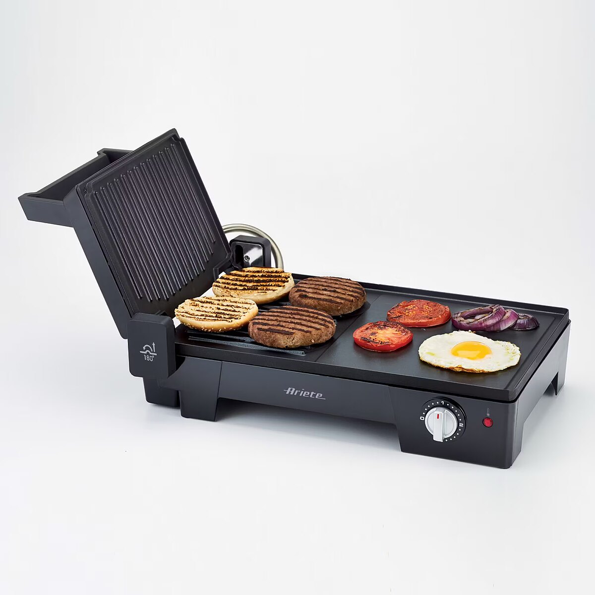 ShortSummaryDescription - Ariete 1916/10, Black, Rectangular, Rotary, Grid + Griddle, 600 x 250 mm, 3 zone(s)
