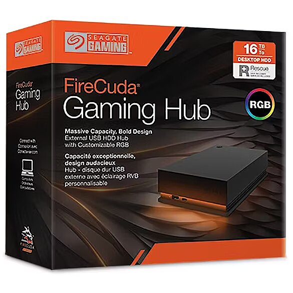 Description - Seagate FireCuda Gaming Hub 16 TB Light up your gaming experience with the Seagate FireCuda Gaming Hub. Featuring up to 16 TB of capacity, create an immersive atmosphere with customisable RGB LED lighting. Plus, dual front-facing USB-C and USB-A ports enable you to connect and power all your peripherals in one place.