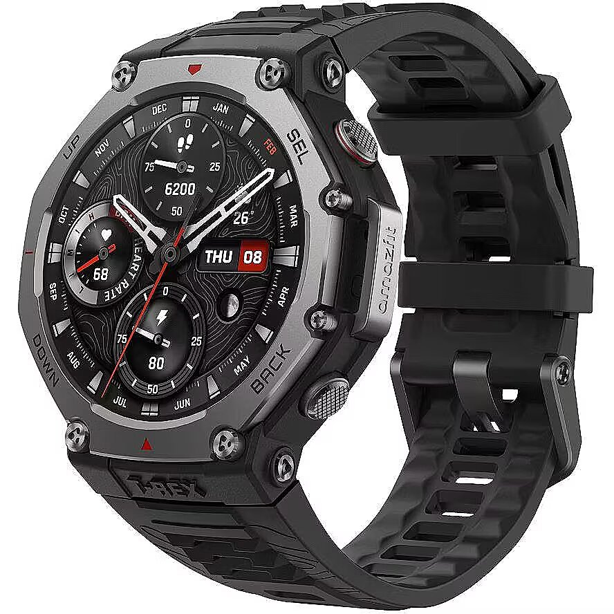 Title - Amazfit T-Rex 3 3.81 cm (1.5") AMOLED 48.5 mm Digital 480 x 480 pixels Touchscreen Black Wi-Fi GPS (satellite)