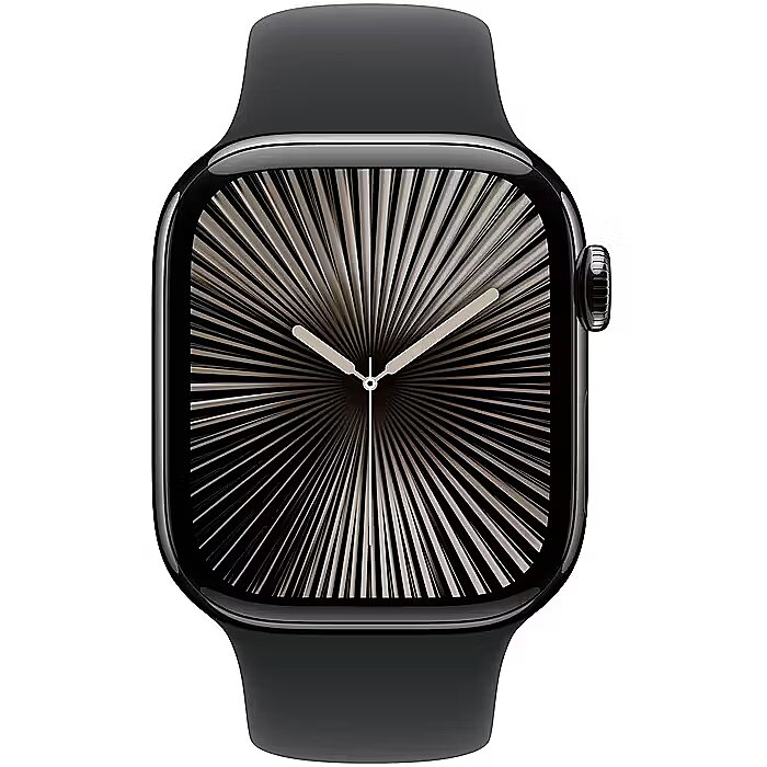 Apple Watch Series 10 GPS + Cellular, Titanium, Black Sport Band (S/M) - 46mm