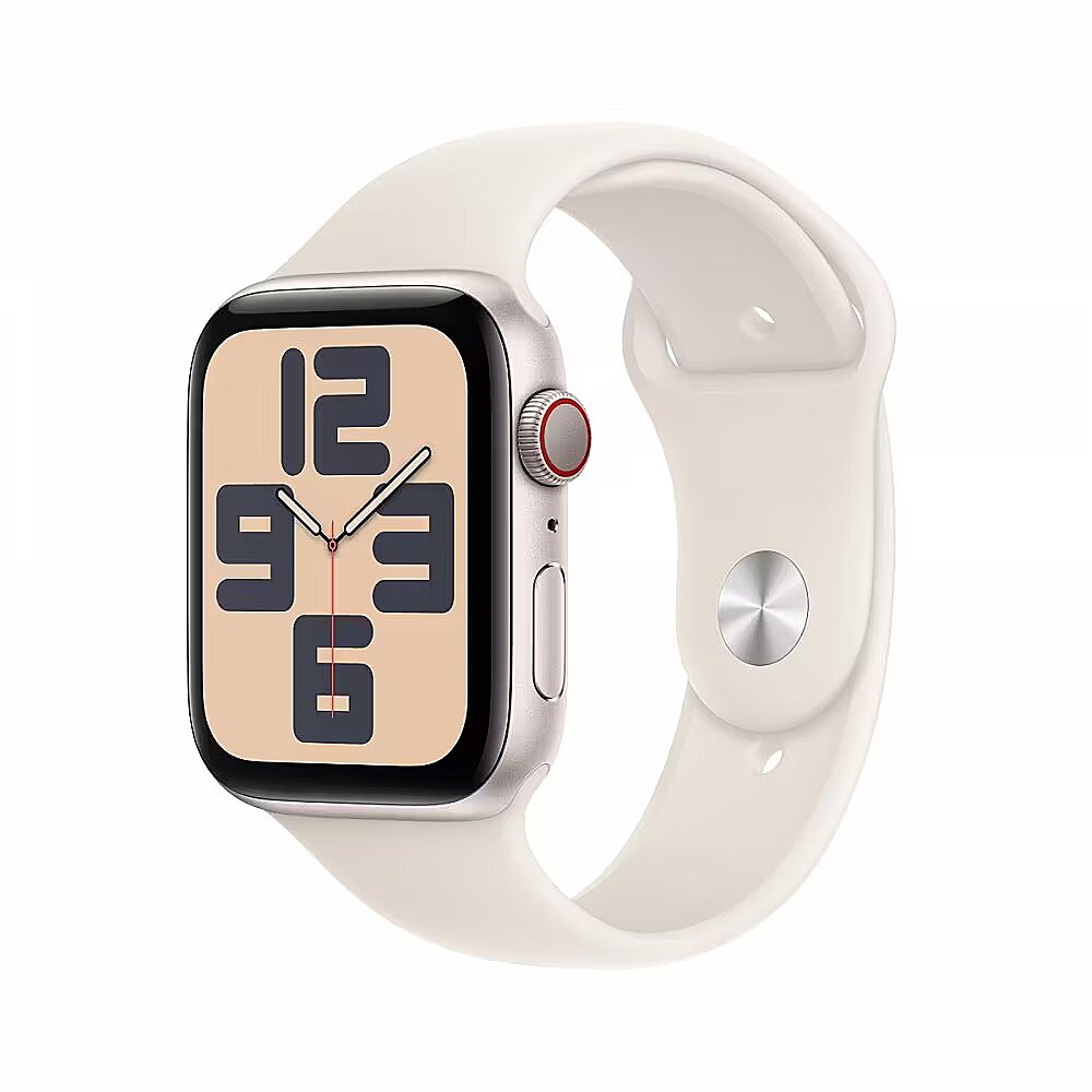 Apple Watch SE GPS + Cellular, Silver Aluminium, Starlight Sport Band (M/L) - 44mm