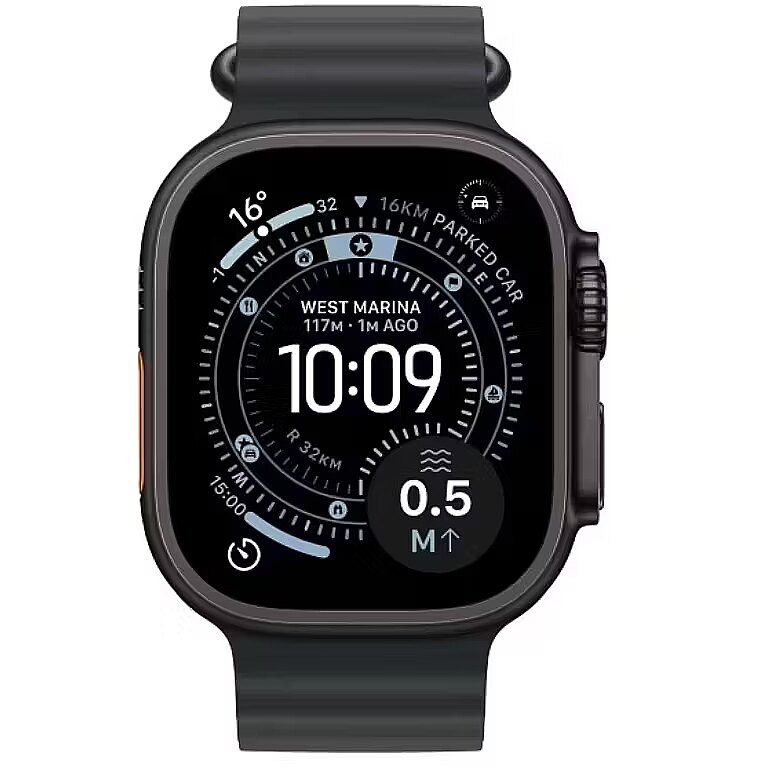 Other features - Czujniki Czujnik pracy serca wykorzystujący impulsy elektryczne Optyczny czujnik tętna trzeciej generacji Czujnik natlenienia krwi Czujnik temperatury Głębokościomierz Czujnik temperatury wody Kompas Stale aktywny wysokościomierz Akcelerometr dużych przyspieszeń Żyroskop z szerokim zakresem dynamicznym Czujnik światła otoczenia Wyświetlacz Częstotliwość odświeżania 1 Hz Aktywna powierzchnia ekranu (422 na 514 pikseli, 326 pikseli na cal) Płaskie szkło szafirowe wyświetlacza Nawet 3000 nitów jasności szczytowej Jasność minimalna 1 nit