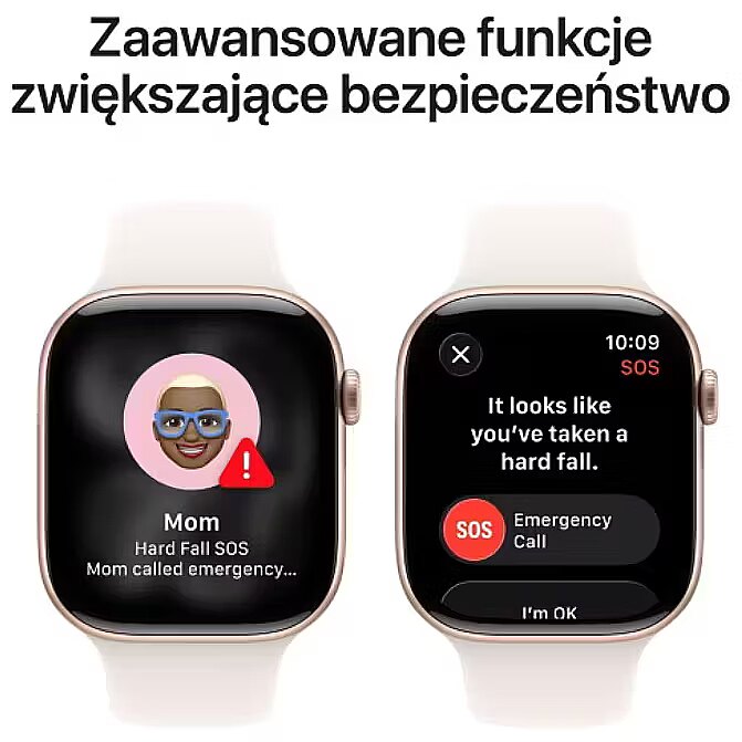 Jeszcze dłuższa praca baterii? Mamy to. Bateria Apple Watch Series 11 wystarcza nawet na 24 godziny normalnej pracy. Ogromny skok wydajności sprawia, że po całym dniu nie musisz zdejmować zegarka na noc, żeby go naładować. Dzięki temu masz lepszą wiedzę na temat swojego zdrowia. Sieć komórkowa to pełna swoboda Dzwoń i tekstuj. Series 11 obsługuje sieć komórkową. Z planem taryfowem jesteś w kontakcie niemal wszędzie, nawet jeśli na czas biegania Twój iPhone został w domu. Apple Watch Series 11 z kopertą z tytanu w kolorze naturalnym, pleciona opaska Solo w kolorze szarozielonym, połączenie przychodzące, widać zdjęcie osoby dzwoniącej, przyciski akceptacji lub odrzucenia połączenia, widać prawy bok urządzenia i pokrętło Digital Crown Zrobisz wszystko skinieniem. Szybkim obrotem nadgarstka wyciszysz przychodzące połączenie, wyłączysz minutnik, odrzucisz powiadomienie i nie tylko. Poręczne rozwiązanie, gdy masz zajęte ręce. Apple Pay. Pieniądze masz dosłownie pod ręką. Małe zakupy w biegu? Jednym stuknięciem w Apple Watch zapłacisz niemal za wszystko w miejscach oznaczonych symbolem płatności zbliżeniowych. Szybko i łatwo. Znajdź swojego iPhonea. Jeśli Twój iPhone gdzieś się zawieruszył, funkcja Znajdowanie dokładne wskaże Ci odległość od niego i kierunek. Kiedy zbliżysz się do urządzenia, dotykowe sygnały zwrotne i dźwiękowe oraz graficzny wskaźnik pomogą je zlokalizować. Stos inteligentny daje wskazówki. Sztos. Udoskonalone algorytmy predykcyjne wyciągają wnioski z danych gromadzonych na urządzeniu oraz analizy Twoich codziennych nawyków. Dzięki temu Stos inteligentny może dyskretnie zasugerować to, co w danej chwili przyda Ci się najbardziej. O, spójrz! Czas pobiegać. Bonjour. Tu Tłumaczenie na żywo. Dzięki Apple Intelligence na Twoim iPhonie aplikacja Wiadomości automatycznie tłumaczy tekst na wybrany język. No i to rozumiem. Funkcja dostępna w wybranych językach. Jego supermoc? Wzywa pomoc. Apple Watch Series 11 jest pełen innowacyjnych rozwiązań stworzonych z myślą o Twoim bezpieczeństwie. Zaprojektowaliśmy go tak, żeby wezwał pomoc, gdy jej najbardziej potrzebujesz. Nawet gdy nie masz przy sobie iPhone'a. Alarmowe SOS. ASAP. Pilnie potrzebujesz pomocy? Jeśli naciśniesz i przytrzymasz przycisk boczny, Apple Watch Series 11 postara się wezwać służby ratunkowe i udostępnić im Twoje położenie. Funkcja Wykrywanie upadków w pogotowiu. Apple Watch Series 11 wykrywa niebezpieczne upadki i pomaga wezwać służby ratunkowe. Ponadto przekazuje dyspozytorom informacje o Twojej lokalizacji i powiadamia bliskich. Chroni Cię funkcja Wykrywanie wypadków. Gdziekolwiek jesteś. W razie poważnego zderzenia samochodowego Series 11 automatycznie pomoże wezwać służby ratunkowe i powiadomi Twoje kontakty alarmowe. Wychodzisz? Zamelduj się. Dzięki funkcji Daj znać zegarek automatycznie powiadomi wybrane przez Ciebie osoby o dotarciu do celu. A jeśli idziesz pobiegać po zmroku, sesję Daj znać możesz uruchomić na czas treningu, żeby poinformować bliskich o jego zakończeniu. Z funkcją Ślad wrócisz na właściwe tory. Funkcja Ślad w apce Kompas potrafi automatycznie odtworzyć pokonaną przez Ciebie trasę, korzystając z danych GPS nawet gdy nie masz zasięgu. Możesz też łatwo dodać punkty nawigacyjne, takie jak miejsce wejścia na szlak czy obozowisko. Skonfiguruj swoją kartę medyczną. W razie wypadku Apple Watch Series 11 zapewni ratownikom szybki i bezpośredni dostęp do najważniejszych informacji o Twoim zdrowiu, takich jak alergie lub przyjmowane leki.