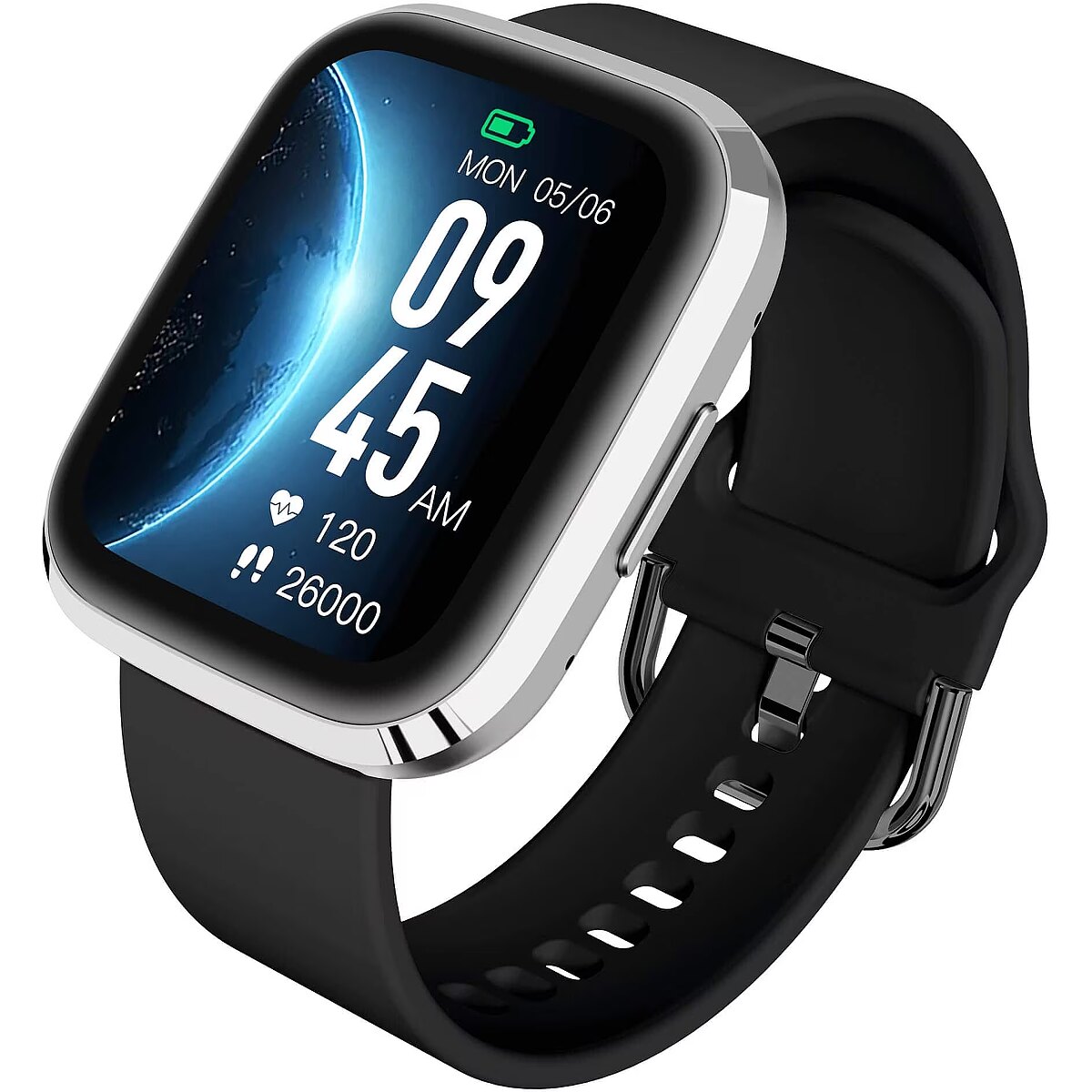 LongProductName - 1.72", 356 x 400, IPS, IP68, Bluetooth, 640 KB RAM, 128 MB ROM, 260 mAh, 46 x 41 x 13 mm, 22 mm x 16.5 - 22.5 cm, 85 g, Android/iOS, Silver-Black