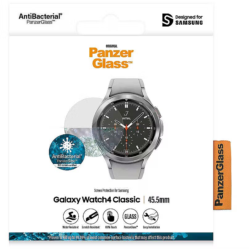 LongSummaryDescription - PanzerGlass ® Samsung Galaxy Watch 4 Classic 46mm | Screen Protector Glass. Product type: Screen protector, Product colour: Transparent, Brand compatibility: Samsung. Width: 34.5 mm, Depth: 0.61 mm, Height: 34.5 mm. Quantity per pack: 1 pc(s)