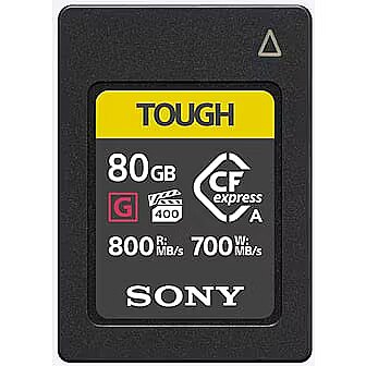 LongDesc - Ultra-high-speed storage for innovative creatorsThe new CFexpress Type A standard was developed to provide compact cameras with the ultra-high-speed performance required for cutting-edge video creation. It maximises the capabilities of α-series cameras and the latest image-processing engines. For creators seeking higher levels of performance and expression, this compact card is a must-have.A new generation of performanceCFexpress Type A – A new standard for compact storageSuper-charge your professional video and photography workflows with Sony’s CFexpress Type A memory cards – ideal for advanced cameras like the α7S III. The world’s firstCFexpress Type A cards, they deliver extraordinary speed, around twice that of the best SDXC cards, in a similarly compact body. With write speeds up to 700MB/sand professional-level durability, Sony CFexpress Type A cards open up a wide range of new imaging possibilities.Extraordinary response speedDramatically expand your photographic possibilities, with uncompressed continuous RAW shooting for fast-moving action such as motor sports and wildlife. Writing speeds of up to 700MB/s far outperform even the best SDXC cards, ensuring ultra-fast camera buffer clearance for responsive continuous shooting.Dependable videographySony CFexpress Type A cards are optimised for continuous, high-bandwidth data writing, making them ideal for professional high-bitrate video recording, such as 4K 120p capture on cameras like the α7S III, where dependability is critical. For extra reassurance and video recording stability they also carry the VPG (Video Performance Guarantee) 400.Ultra-efficient workflowDramatically accelerate your workflow with the optimised MRW-G2 card reader and ultra-fast read speeds of up to 800MB/sfor data transfer and backup. Work seamlessly with high-resolution photos and high-bitrate video, to turn projects around at the speed of your imagination.Rugged. Reliable. Ready.Partnered with professional equipment like the α7S III, CFexpress Type A memory cards are perfect for the unpredictability of sport and location shoots or the hazards of outdoor expeditions. They are designed for extended professional use in the most challenging environments – from snow-covered mountains to sand-blown deserts – so you can shoot, swap and store with total confidence.For the roughest placesThanks to Sony’s unique TOUGH card design, our CFexpress Type A cards offer over 10x greater bend resistance than standard CFexpress cards. Designed for absolute dependability, their rigidity is tested to 150 newtons to protect your card data during drops from up to 7.5 metres – 5 times that mandated by the CFexpress Type A standard. For the toughest conditionsYou can rely on CFexpress Type A memory cards to work faultlessly in extreme temperatures, harsh electrostatic environments and intense UV light or X rays. With IP57 dust and moisture ingress protection your data is safe even from a drop at the beach or an accidental cycle through the washing machine.Scan and monitor your memoryOver time, flash memory wears out and no longer records data. When used with the MRW-G2 card reader, Sony’s Media Scan Utility automatically scans your CFexpress Type A memory card, keeping you informed of its condition so you can take action before it reaches the limit.Recover lost filesEven when things go wrong, you can avoid disaster with downloadable rescue software for Sony memory card customers that recovers accidentally deleted files and corrupted photos and videos in various common formats.