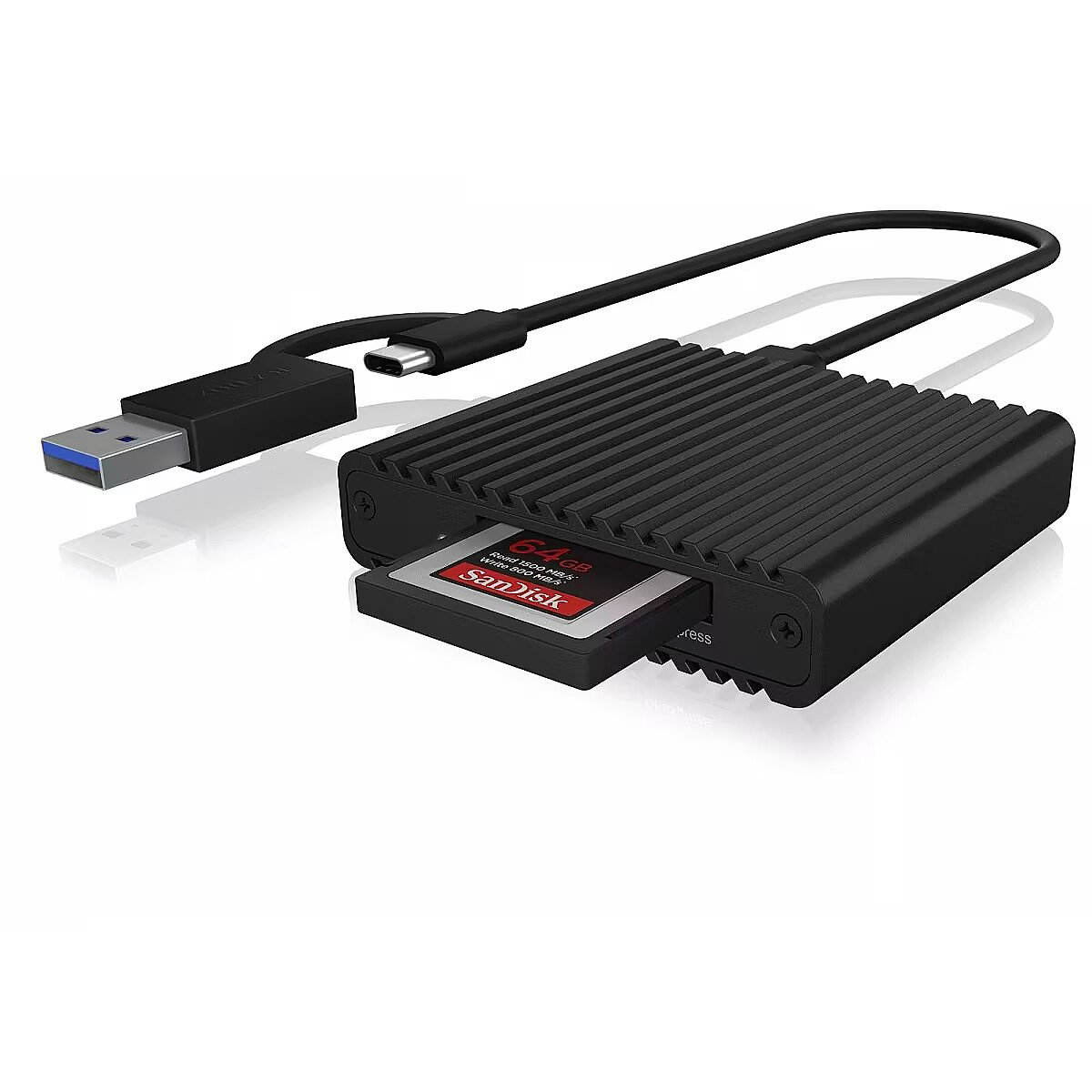 with USB 3.2 (Gen 2) Type-C and Type-A interface IB-CR404-C31 CFEXPRESS 2.0 TYPE-B CARD READER: The CFexpress 2.0 memory card standard is finding its way into professional system cameras. High performance is guaranteed USB 3.2 (GEN 2): Data transfer rates of up to 10 Gbit/s. Benefit from incredible speed when transferring your high-resolution images and videos USB-C & USB-A COMPATIBLE: The included combo cable allows you to work on both USB Type-C and Type-A ports. In addition, the reader is backwards compatible with USB 3.1 and USB 3.0 HIGH COMPATIBILITY: The card reader is compatible with Windows, macOS and Chrome OS. Thanks to Plug&Play, no driver installation is necessary and the device can be used directly COOLING-RIP DESIGN: The IB-CR404-C31 is made of a high-quality aluminium housing with a cooling-rib design. This increases the durability and protects your memory card from overheating