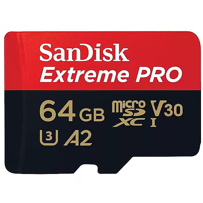 Technical_details - Type: memory card EAN: 0619659188573 Manufacturer No.: SDSQXCU-064G-GN6MA Series: Extreme PRO Capacity: 64GB Type: microSDXC Bus interface: UHS-I, high speed Speed: Read: Max. 200 MB/s, Write: Max. 90 MB/s Speed Class: Class 10 UHS Speed Class: U3 Video speed class: V30 Application performance class: A2 Note: includes SD adapter