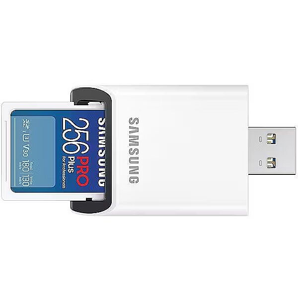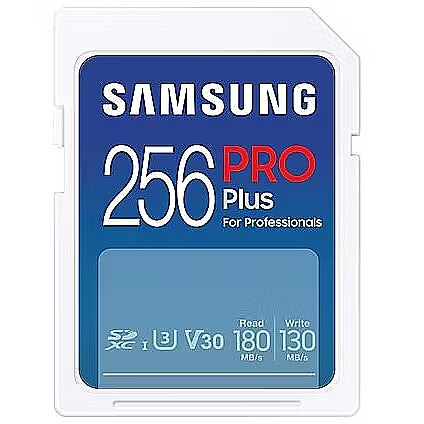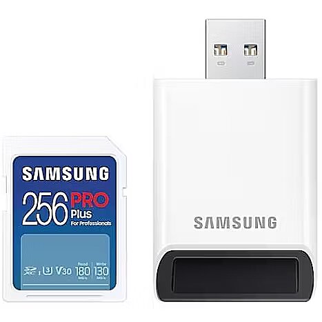 Description - SD PRO Plus MB-SD256SB/WW 256GB memory card + reader Made for professionals Built to last, the Samsung PRO Plus card comes in a range of capacities and is reliable and efficient, making it the perfect choice for photographers, content creators and digital media professionals. Card intended for use in cameras and computers. The #1 trusted brand in flash memory. Experience extreme speed An excellent choice for professionals. Read and write speeds of 180MB/s and 130MB/s respectively enable dynamic burst shooting and smooth 4K movie recording. Capture truly perfect content for your audience. Choose your capacity A place for all your memories. Memory cards are available in 512, 256, 128 and 64 GB to meet users' storage needs. Thanks to this variety, you can always have an SD card that suits your needs. Data safety Highly durable with comprehensive 7 factor resistance protection. It's built to withstand tough conditions and heavy use, whether you're at home, outdoors, or on the go. A 10-year limited warranty gives you long-term peace of mind. The world's #1 flash drive Experience the extraordinary performance and reliability that only a brand that has been the world leader in flash memory since 2003 can deliver. All firmware and components, including Samsung's world-renowned DRAM and NAND, are manufactured in-house, resulting in total quality control.