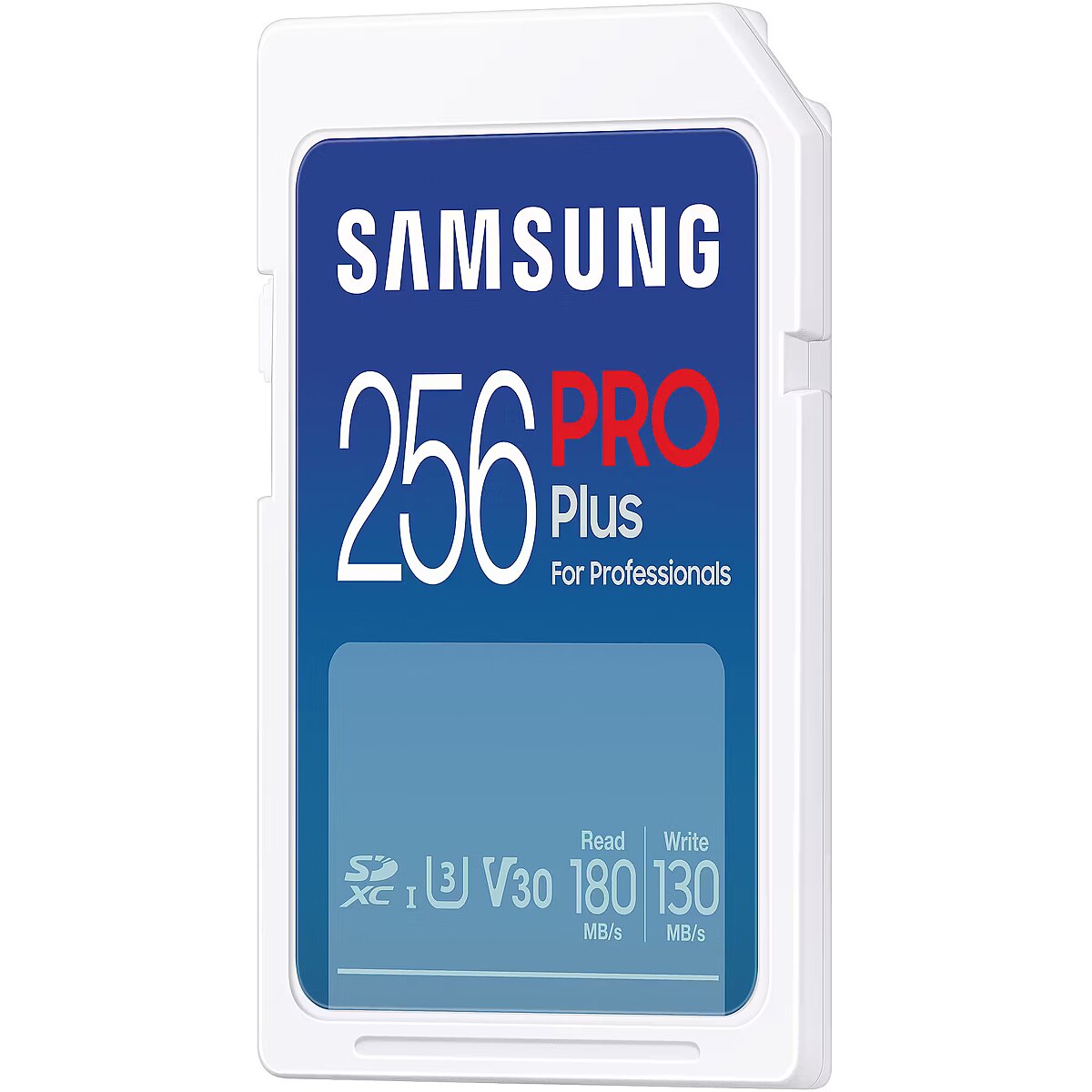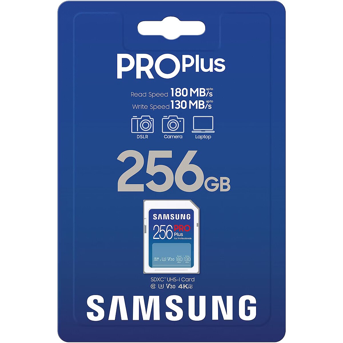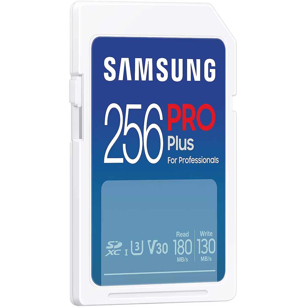 LongDesc - PRO ApprovedBuilt to last, Samsung's PRO Plus offers extreme performance in a variety of capacities, with robust reliability making this SD card the ideal choice for photographers and other digital media professionals. Use it across your work devices, and continue relying on the #1 brand name in flash memory.Extreme speedA top choice for the pros. Extremely fast read/write speeds of 180MB/s and 130MB/s respectively support dynamic burst shots and smooth 4K video for all of your professional content to capture your audience.Choose your spaceSpace for all your memories. Choose from 512GB, 256GB, 128GB, and 64GB* to match your storage necessities.With this variety of choices, you always have an SD card that suits your needsAll the space you needSpace for all your memories. Choose from 512GB, 256GB, 128GB and 64GB to match your storage necessities. With this variety of choices, you always have an SD card that suits your needs.Multi-proof reliabilityHighly durable with comprehensive 7-proof protection. It’s built to survive tough conditions and heavy usage, whether you’re at home, outside, or on the go. The 10-year limited warranty brings long-lasting peace of mind.World's No.1 Flash Memory BrandExperience the superior performance and reliability that you can only get from the world's number one brand for flash memory since 2003