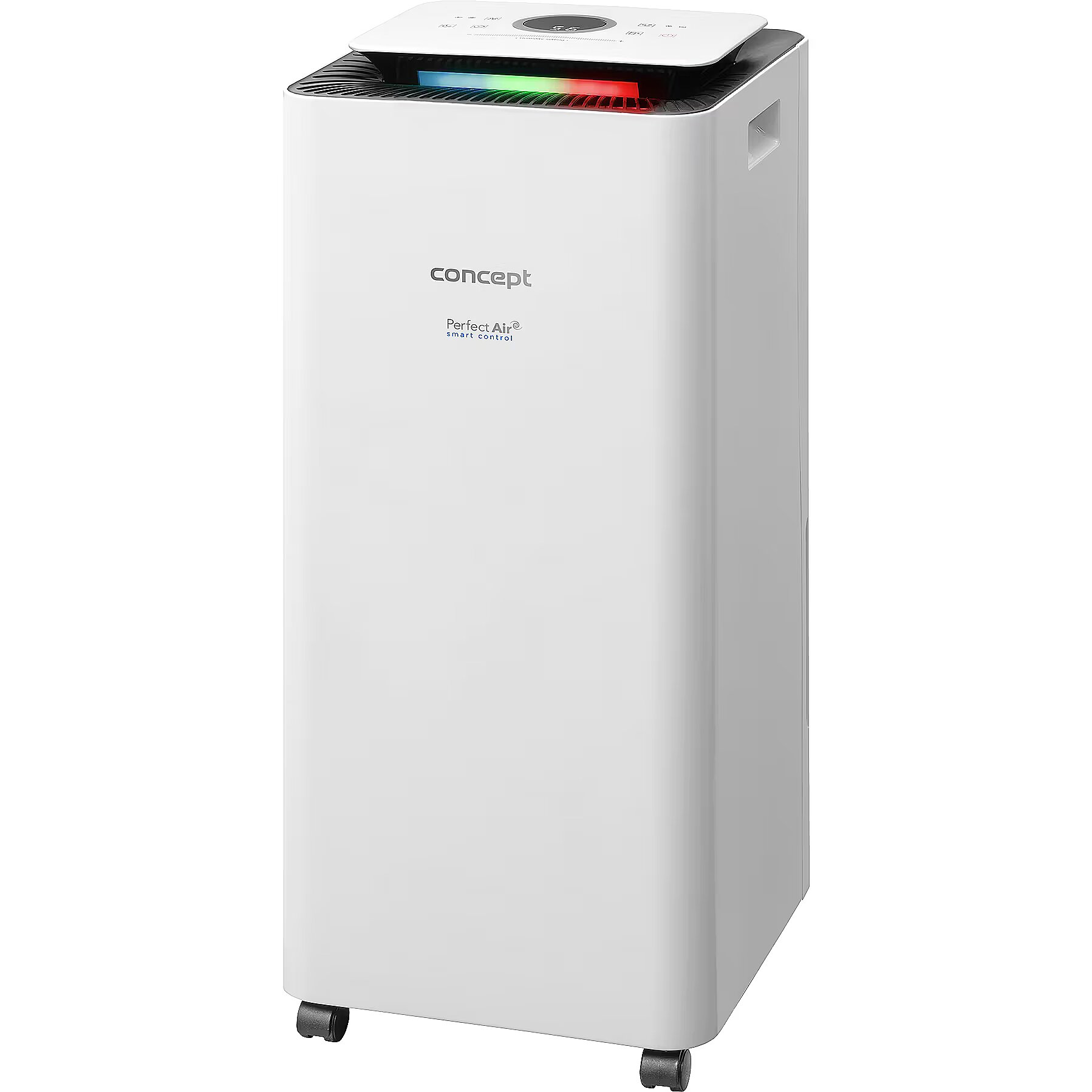 Description - Smart Concept OV2216 Perfect Air dehumidifier with air purifier Increased humidity can pose a health hazard and cause damage Excessive air humidity in our homes not only causes material damage, but may also pose a health hazard. This is because it promotes the growth of fungi, which can cause health complications. If your apartment or basement suffers from mold, it is most likely due to high humidity. The OV2216 dehumidifier is the perfect helper in protecting not only your health, but also your property. It is equipped with 360° wheels, so you can easily move it to any place. Enables continuous operation with a hose for permanent water drainage The OV2216 dehumidifier has 2 performance levels and can condense up to 16 liters of water in one day. Thanks to the 3.5 liter water tank, it will not require frequent attention. If the water tank is full, the device turns off and the tank full indicator lights up. If you want to dry wet areas for a long time, use a hose to continuously drain the water. The water will be discharged directly into the sewage system and the device will operate continuously. Dehumidifier and purifier in one The OV2216 model is a combination of a dehumidifier and a purifier. It is equipped with a quadruple filtration system, thanks to which it captures harmful substances contained in the air and prevents their further spread. Each individual filter layer captures specific types of contaminants: The dust filter absorbs larger air pollutants (dust particles, hair, fur, pollen and other pollutants) The carbon filter absorbs poisonous, asphyxiating and other unpleasant gases and vapors such as formaldehyde, benzene or cigarette smoke Ultraviolet radiation eliminates harmful bacteria, viruses, fungi and absorbs odors The ionizer refreshes and purifies the air, increases the amount of negatively charged ions that neutralize odors in the air and absorbs positively charged dust particles, viruses and bacteria, Intuitive touch control for smooth humidity regulation The dehumidifier offers simple and intuitive touch control with a slider for smooth humidity regulation. 4 operating modes to choose from: Automatic mode - the dehumidifier maintains the selected humidity level Continuous operation for long-term drying of damp surfaces with continuous drainage hose Drying laundry speeds up the drying of laundry and eliminates moisture in the room, thus preventing the formation of mold Fan - for air purification without dehumidification Concept Home mobile application You can control the dehumidifier from anywhere using the Concept Home mobile app, available free of charge for iOS and Android. You can remotely turn it on or off, select the desired mode and check the current air condition in the room where it is currently located. Using the mobile app, you can create an exact schedule for when you want the dehumidifier to run. Just select the day, time range and dehumidification efficiency, and the device will start automatically at the set time. The product is also compatible with the Tuya Smart application. You can monitor the current humidity using colorful LED lighting The dehumidifier is equipped with a sensitive sensor that allows you to monitor the current humidity in the room in real time using colorful LED lighting: red = high humidity (RH > 70%), green = satisfactory humidity (70% - RH - 50%), blue = low air humidity (RH < 50%). Timer with the option of setting a delayed turn on or turn off Thanks to the timer function, you can set the exact time to turn the device off or on for up to 24 hours, so you will have precise control over its operation.