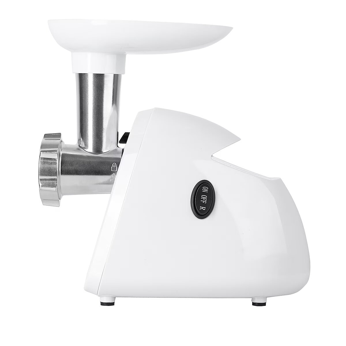 Technical details > Other features - A solid device for those who wish to prepare home made sausages and ground meat. It is equipped with three cutting sieves (exchangeable): one to mince meat, the second for poppy seeds, the third one has the middle-sized holes. In the set a plunger and sausage filler are also included. The whole device is made of durable materials that are easy to be disassembled and cleaned. Apart from the forward mode it has a reverse function. Normally the device is rated at maximum 350W with the leverage power of 1500W.