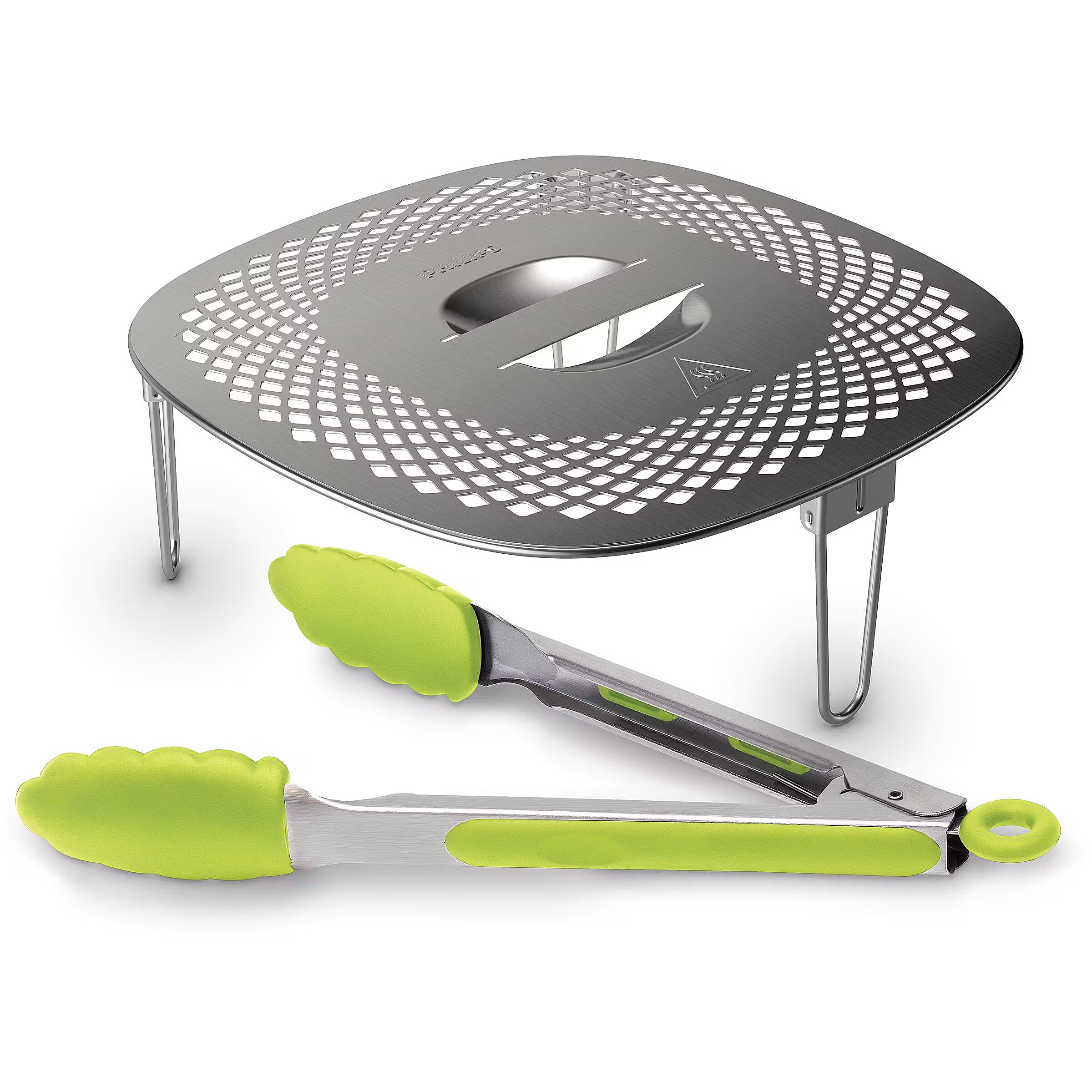 Prepare your favorite snacks using the snack cover. Enjoy healthy veggie snacks like kale, beets or dry fruits and also chicken wings or pork belly in an easy and quick way. Remove the snacks using the silicon head easy-grip tongs